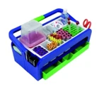 Product Description Organize a variety of items efficiently. Use the compartments surrounding the handle, the supply drawer and side pockets. Centered soft rubber gripped handle keeps balance during transport. Rotate the ratcheting handle out of the way for quick loading. Replace insert and wash tray for easy cleanup. ABS tray, polystyrene insert and Delrin test tube rack. Tray comes with a 13mm OneRack test tube rack and two disposable polystyrene inserts. Manufacturer Contact Information 1.847.816-5070 Sturdy tray frame holds polystyrene inserts on top and supply drawer below Built-in side pockets offer additional storage space for beepers or draw slips Ratcheting handle folds out of the way for easy access even over tall sharps boxes Soft rubber grip reduces hand and finger strain Multiple compartments keep a variety of supplies neatly at hand and organized Inserts include extra-deep compartment for sharps container Drawer "clicks" shut and will not pop open while carrying