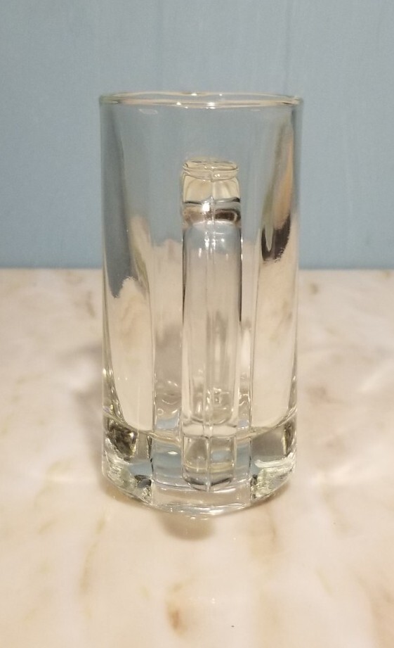 This beer mug is a great addition to any glassware collection. It is made of clear glass and is 6 inches tall, with a thumbprint handle that adds a touch of elegance. Diameter 2.75 inches. The mug is heavy, weighing in at 1 pound 13 ounces, making it a solid and sturdy choice for your beer needs. Perfect for family and friends gatherings, this mug is suitable for all occasions. The glassware type is a mug and it also features a handle for easy grip. This item is a great gift idea for any adult in your life who appreciates good beer. You Will Receive The Item(s) Pictured. We Do COMBINE SHIPPING So Take A Look At Our Other Items. If You Would Like To Take Advantage Of The COMBINED SHIPPING Please Wait For Invoice Before Payment. If You Have Any Questions We Will Be Happy To Answer Them.