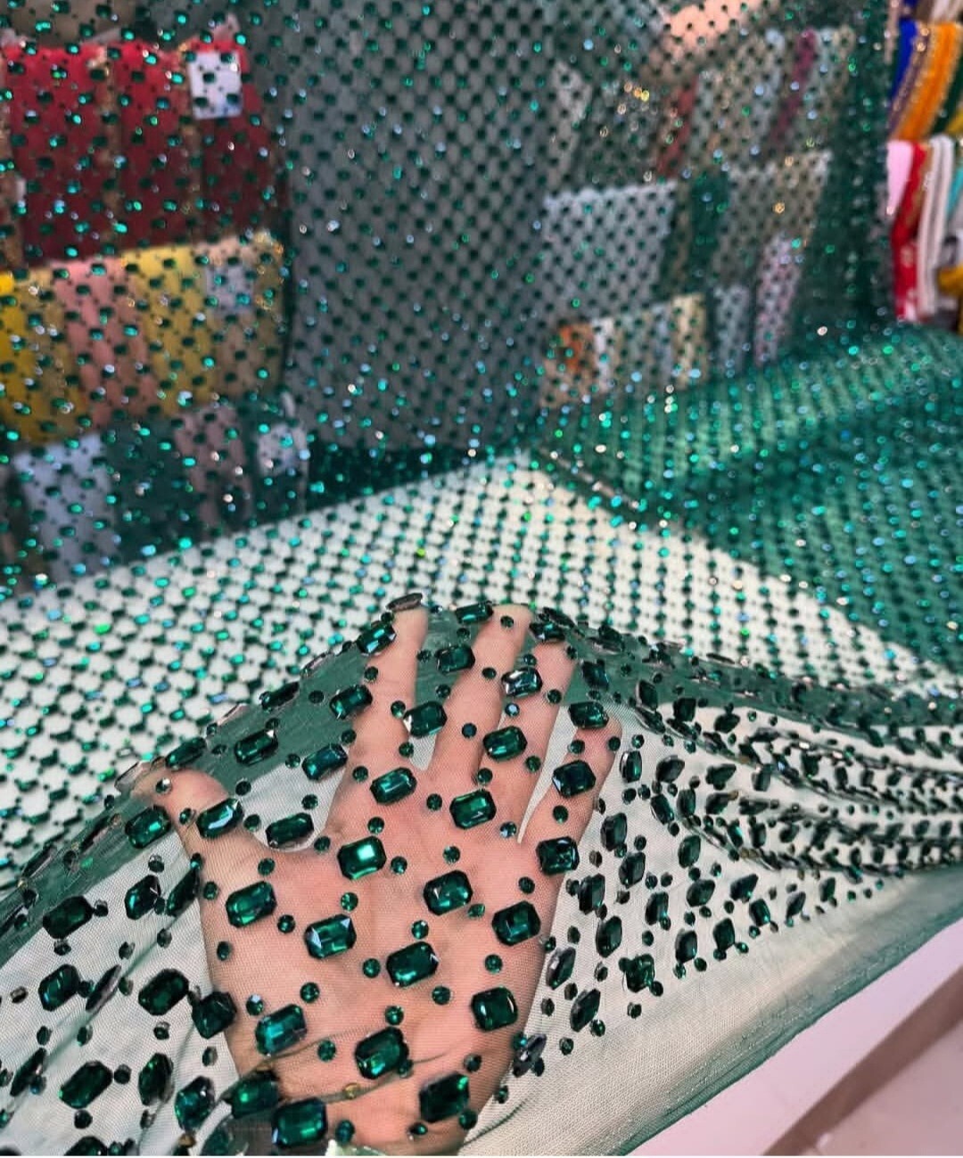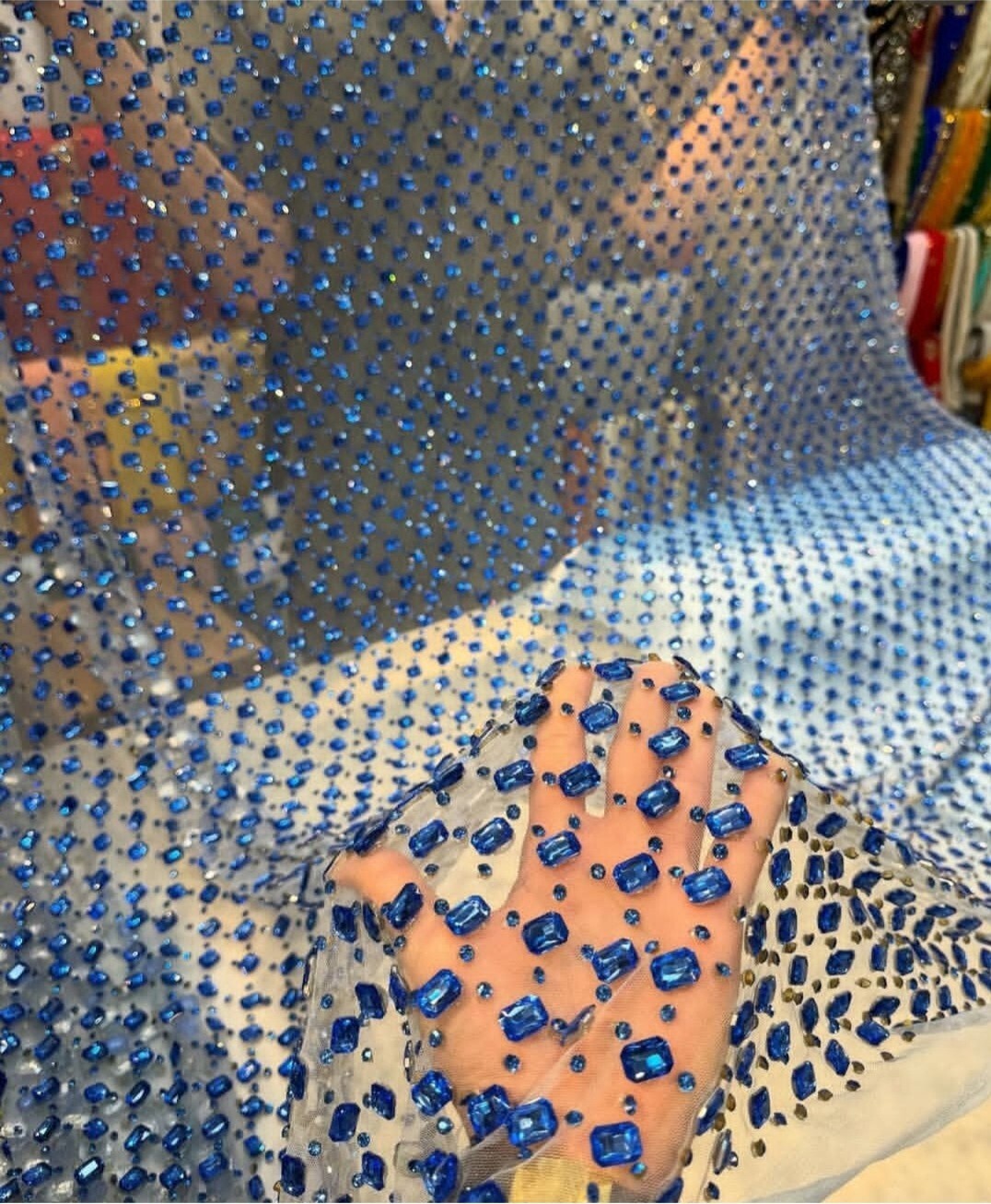 Embrace exquisite craftsmanship with Mk Zariwala's Heavy Beaded Lace Fabric, an ideal choice for those seeking a touch of elegance in their creations. This fabric boasts a stunning stones pattern, with each inch meticulously handcrafted to ensure a unique and high-quality finish. The heavy weight of the material adds to its luxurious feel, perfect for a variety of projects from apparel to home décor. Whether you're designing a custom dress, creating exquisite bags and purses, or adding a refined touch to your wedding or prom decorations, this versatile fabric is suitable for numerous applications. Its high thread count and intricate beaded features demonstrate the exceptional attention to detail, reflecting the heritage and skill of Indian manufacturing. By the yard, this lace material is a testament to timeless style and artisanal quality.