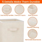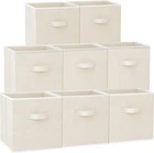 Tough non-woven fabric with thick rigid boards 8 pack 11 inch foldable fabric cube storage bins 【QUALITY STRUCTURE】These cubby storage bins are made from tough non-woven fabric with excellent sewing to make them last, heavy cardboards added at the sides and bottom to make this storage bins rigid enough to hold a heavy load. 【FIT WITH MOST OF FURNISHING】Measuring 11x11x11 inches, our 8 pack beige storage bins could fit perfectly with most of cube organizer, shelf, closet, from bedroom to playroom to laundry room, to store clothes, linens, toyes, books etc. 【EASY GRIP】These fabric storage cubes have two sewn-in handles on the sides for easy room-to-room carrying or removing on a shelf. With the reinfored handles, they could work well as drawers, open-top bins, or storage baskets for shelves. 【COLLAPSIBLE DESIGN】These cube storage bins could be fold flat for compact use when not in use. 【SPACE SAVING】These square storage bin is dorm room essentials and apartment essentials for closet storage and organization, making all rooms neat and clean.