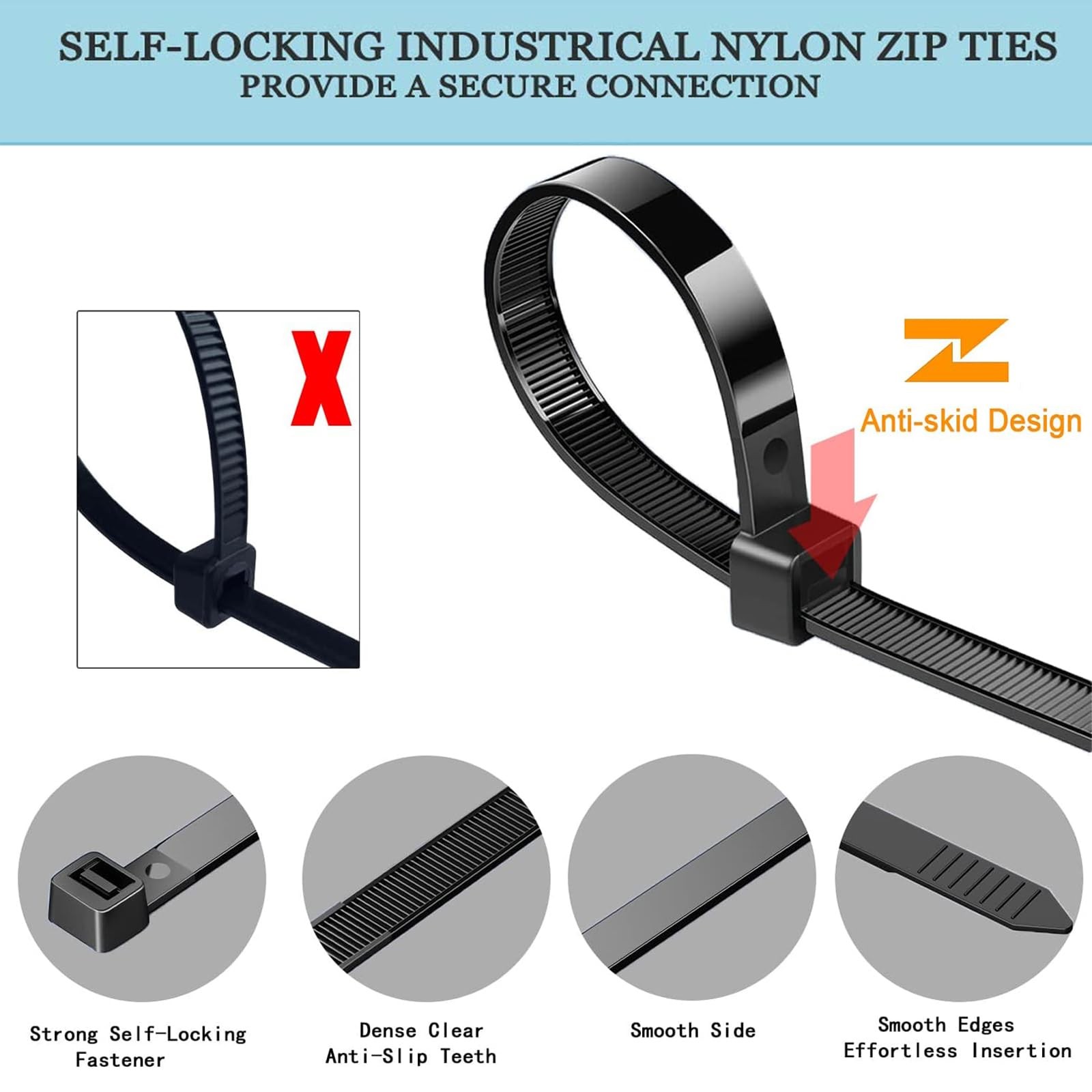 Zip Ties Heavy Duty, Large Zip Ties 14"with 200 lbs Tensile Strength,Long Zip Ties 14 inch Big Cable Ties, Black Zip Ties 50 Pack for Indoor And Outdoor Multi-Purpose Use Plastic Tie Wire Wide Thick Heavy Duty Zip Tie :The strength tensile of a zip tie depends on its width. Our Cable ties with 200 lbs are 0.35 inches / 8.8 mm wide. The wide design makes the large zip ties stronger, suitable for hanging fences, securing tubing insulation,Christmas lights ,cable management, decorations and supporting plants. Enforced Lock Design:The black zipties with a 4-tooth zip design, strong powerful lock for industrial everyday use. Great wire ties that can work for builders, household use, decorations and crafts. The reusable zip ties can be untied undo by a pin or a small nail. UV Resistant Zip Ties:The plastic tie wraps are made of halogen-free Nylon 66(UL 94V-2 Rating) which is UV resistant. Heat - Cold Resistant:Our reusable cable ties can resist heat and cold, you can use them as an insulated handle, electrical cable ties and for other household uses. Package & Guarantee:50 pcs black heavy duty zip ties 18 inch 200lbs for cable management. We guarantee that you will be satisfied with the black cable ties. Please feel free to contact us if you have any questions with the black zip ties, we'd love to help. Try it, totally risk free! Long Zip Ties Heavy Duty 14 inch 50 Pack AGAOTIAN Co.,Ltd is a professional factory of nylon cable ties. We will continue to improve the product quality, provide top grade products and the best service for our customers. Since 2008, over 8000 millon people chosen AGAOTIAN. High Quality Our zip ties heavy duty are made of UV resistant halogen free nylon 66. Operation temperature is -40℉ to 185℉with UL94V-2 flammability. Higher Tensile Strength The tensile strength of our large zip tie is 200 pounds, higher than others. Our strong zip ties width is 0.35 inch, wider than others(0.2 inch). Self-locking Design Our zip ties heavy duty can be easily locked, tightly and securely. One-piece construction for consistent performance and reliability. Multi-purpose Applications Our cable ties heavy duty can be used to tie cords and cables for electronics. Zip ties heavy duty can be used to organize electrical wires and computer cable ties. Warranty Our zipties have a 1-year warranty period. Our customer will receive a 100% refund if any quality issues under warranty period. Tips Warning: Keep this plastic bag away from baby . Warning: Used in proper temperature and tensile strength. Warning: Keep it sealed for long-term use. Package Includes 14 inch Heavy Duty Zip Ties Black 50Pack. Shipping We offer FREE shipping on all orders! We ship within Three business days of payment, usually sooner. We use a selection of shipping services such as UPS, FedEx, USPS etc. We only ship to the lower 48 states, no APO/FPO addresses or PO Boxes allowed. Local pickups and combined shipping options are not provided at this time. Return You can return a product for up to 30 days from the date you purchased it. Any product you return must be in the same condition you received it and in the original packaging. Please keep the receipt. Feedback Customer satisfaction is very important to us. If you have any problem with your order, please contact us and we will do our best to make you satisfied. Contact Us If you have any queries, please contact us via ebay. We usually respond within 24 hours on weekdays. Please visit our eBay store to check out other items for sale! Thank you for shopping at our store.