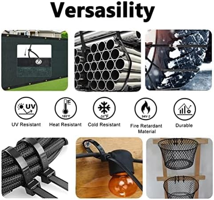 Store New Arrivals Add to Favorite View Feedback Contact Black Zip Ties Heavy Duty 20 Inch Outdoor, 250Lb Extra Large Cable Tie Wraps Long Plastic Wire Ties Wide Big Strong Thick Zipties 40 Pack Description Item model number YE20250 Part Number YE20250 Style Heavy Duty Number of Pieces 40 Color Black Material Nylon Batteries Required? No Tensile Strength 250 Pounds Item Weight 1.23 pounds Maximum Diameter 12 Millimeters Item Length 20 Inches Usage Outdoor Use Batteries Included? No Size 20in/40Pk 250lbs Included Components Large Cable Tie 20 Inch Nylon 66 Long Zip Ties 20 Inch Black - Extra Large Zip Ties Heavy Duty Outdoor, long cable ties 20 inch / 500mm with 12mm width, wider, thicker and more durable for use Cable Zip Ties Heat Resistant Outdoor - Wire Tie Wraps Heavy Duty Zip Ties for Outdoor Use lab-tested for cold weather & hi temp ranges from -31℉ to +185℉ (-35℃ to +85℃),Fire Resistant Rating 94V-2 and waterproof Multipurpose Ties Wraps - Our Plastic Tie Wrap Black are perfect cables organizer for wire management, tackling jobs tough, hanging heavy stuffs, quick fixes around your home, pergola, privacy screen fence, patio mesh shade net cover, workshop, DIYers Premium Black Nylon Wire Ties 6/6 - Heavy Duty Cable Ties features high quality PA 66, our industrial zip ties heavy duty with 250 lbs tensile strength. Big thick zipties bundle meet your needs for tough jobs Self-locking Electrical Cable Ties Reusable - Wide Ziptie is self locking zip ties with 4-teeth ratcheting, easy to use. You can use a pin to release large zipties black heavy duty if you need to reuse long wire ties. (A little hard to undo) Product Description Large Zip Ties Heavy Duty Outdoor 20 Inch Long Black Cable Ties 250lbs Industrial Strength Wide Zipties 40 Pieces Nylon Zip Ties Heavy Duty Zip TIe for Outdoor Use Large Wire Ties Heavy Duty ABOUT US We offer the best prices around on high quality products. SHIPPING We are always working hard to ensure your package arrives as soon as possible. Please understand that some factors like weather, high postal traffic, and the performance of shipping companies are outside of our control. We offer free shipping and ship within 2 business days of payment, usually sooner. We do not accept P.O. Boxes. Please provide a physical address. For shipping outside of the continental USA, we only use eBay's Global Shipping Program.The item is shipped to KY and then sent to the rest of the world. International customers are responsible for all duties and taxes. Continue to check out in order to calculate costs for shipping the item to your country. Messages regarding eBay's Global Shipping Program MUST be directed at eBay EXCLUSIVELY. RETURNS We offer a 30-Day Return Policy on items which you are not completely satisfied with. You have the option for a full-refund or an exchange of the item. No returns are available on items shipped outside of the USA. PAYMENT We accept PayPal. CONTACT US This page content is yet to come Please ad us to your favorite seller and visit again later Thank You CUSTOMER SATISFACTION We try our very best to make sure every customer is completely satisfied. If there's a problem, message us! We're happy to help. WE ACCEPT