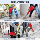 Features: 【Unmatched Power and Durability】 Experience exceptional performance with the Heavy-Duty Demolition Jack Hammer, boasting a robust 2200W motor that delivers a remarkable 1700BPM impact rate. Crafted with heavy-duty metal construction, this jack hammer symbolizes extreme durability and corrosion resistance, promising long-lasting performance even in the most demanding work environments. Whether you are breaking concrete, chipping, or trenching, the is your reliable companion for any heavy-duty task. 【Effortless Handling and Versatility 】Equipped with a 360° swivel anti-vibration handle, the offers maximum comfort and control during operation. The adjustable front handle allows for easy maneuvering in various positions, enhancing operator efficiency and reducing fatigue during extended work hours. The non-slip rubber grip provides excellent friction and absorbs vibrations, offering a secure grip and smooth operation. With its wide range of applications, including demolition, trenching, drilling, and concrete cutting, this versatile tool is a must-have for professionals in construction, plumbing, and interior decoration industries. 【Precision Chisels for Every Job 】The comes complete with a set of six replacement chisels, each meticulously crafted from heat-treated alloy steel for outstanding durability and performance. Whether you need a clay spade chisel, scraping chisel, flat chisel, or pointed chisel, this comprehensive set has you covered for a variety of construction tasks. The quick assembly and disassembly feature enable hassle-free chisel changes, ensuring seamless workflow and increased productivity on the job site. With the addition of a tool box and protective gloves, the is a complete solution for all your demolition needs. 【Safety and Comfort Enhancements】 Prioritizing user safety and comfort, the incorporates advanced technology to provide a secure and pleasant working experience. The special shaped handle absorbs vibrations, reducing muscle fatigue and improving overall comfort during operation. The trigger and locking buttons allow for precise speed control, enhancing operator safety and preventing accidental activation. The viewable oil port simplifies maintenance tasks, while the cooling system efficiently dissipates heat, ensuring optimal performance and extending the tool's lifespan. 【Unleash Your Productivity】 With its wide range of applications and superior performance capabilities, the Heavy-Duty Demolition Jack Hammer is the ultimate tool to elevate your productivity and efficiency on the job site. From demolition projects and trenching to concrete cutting and interior decorating, this versatile tool offers unmatched power, durability, and precision to tackle any task with ease. Package Included: As the picture shows