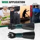 Specification: Lining Material: Cotton Color: Green&Black Length: 23.6" Width: 11" Opening diameter: 7.3" Features: The sleeves are made of PU material, which is more soft and comfortable. The inside of the rubber sandblasting gloves is cotton lined, which absorbs sweat during use and will not be allergic to the skin. Rubber sandblasted gloves are neatly stitched and more durable. The small particles on the palm add friction, making it easy to grip, and granular gloves are more durable than flat gloves, suitable for small sandblasting operations. Kindly Note: Avoid direct sunlight to avoid accelerated aging. Avoid mineral oil, vegetable oil, animal oil, organic solvent. Package Content: 1 Pair of Sandblaster Gloves Specification: This sandblasting glove is 23.6 inches long and 11 inches wide; The opening diameter is 7.3" . Premium Quality: Sandblasting gloves are made of durable PVC and soft cotton, cotton lined feels soft and comfortable, absorbing sweat well. Rough rubber surface for easy grip. Better Friction: Sandblaster gloves kit with Particles Palm, Palm parts thick twice densified fully,particle palm but also protect the palm of your hand,to hang on parts,suitable for sand blasting cabinet sand blast. Heavy Duty Sandblaster Gloves: gloves for Model 60, 90, 110 and 260 sandblasters. The gloves feature 23.6-inch vinyl sleeves for arm protection. Gloves fit most sandblasters. Wide Application: The rubber sandblasting gloves are widely used in fishing, agriculture, animal husbandry,gardening,chemical processing,household cleaning,car washing,machine maintenance,etc. Kindly Note: Avoid direct sunlight to avoid accelerated aging. Avoid mineral oil, vegetable oil, animal oil, organic solvent.
