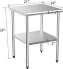 listing template VISIT OUR STORE SIGH UP FOR EMAIL Heavy Duty 24'' x 24'' Stainless Steel Kitchen Prep Table Commercial Workbench Introduction: The Stainless Steel Work Table works well for food prep, storage, or display, the whole structure made of the stainless steel makes its heavy duty and durable . You can adjust the height of the rubber feet to make the table stable on uneven ground. Specification: 1. Material : Stainless Steel 2. Color : Silver 3. Product Dimensions : 24"D x 24"W x 34"H 4. Style : Work Table 5. Finish Type : Polished Package Include: 1 x Stainless Steel Work Table About this item: 【Stainless Steel Material】Our prep table top, leg and undershelf is made of high quality stainless steel healthy. The stainless steel and polished surface offer greater rust and corrosion resistance. Using rag or paper you can easily clean it quickly. 【Adjustable Undershelf & Large Storage】Our 24x24 inches kitchen work table with adjustable undershelf provides you with more storage space. The undershelf can be fully adjusted from the floor to table top, offers enough storage room to place all your utensils or other tools 【Easy to Assemble】The assembly of a kitchen work table is very simple. You can install the work table under the paper instructions or video instructions (The fasten lock of the legs are upgraded for more easier lock and more sturdy; there are tick marks on the legs for more convenient to adjust the height of the undershelf). Warm Tips: screws are pre-installed in the lock location of the tabletop and undershelf. 【Sturdy & Lightweight】There are 4 rubber feet make the table stable on uneven ground; It is lightweight for easy moving and relocation. It's 20 lbs in weight, allowing you to move it without help 【Multipurpose Use】This 24x24 inches work table can be set in kitchen restaurant hotel garage bar laundry workshop school hospital warehouse or any other commecail setting, as a repair or experimental bench Adjustable Undershelf Adjustable undershelf provides you with more storage space; Height marks on the legs for more convenient to adjust the height of the undershelf Upgraded Fasten Lock Upgraded for more easier lock and more sturdy; Warm tips: the screws are pre-installed on the lock locations Stainless Steel Tabletop Table top is made of high quality stainless steel, anti-rust, and not easy to wear and tear Easy to clean(Warm tips: you need to clean up the work table to avoid unnecessary damage after usage) Adjustable Rubber Feet 4 rubber feet can be adjusted to make the table stable on uneven ground Shipping Policy 1. Ship worldwide from New Jersey by reliable shipping companies -- USPS, UPS, FEDEX, DHL, etc., and only to VERIFIED PAYPAL ADDRESS. Transport Delivery ETA. Package handling only takes 1 business day at our warehouse, so please make sure entering correct payment and shipping information before checking out. Once your payment is completed, we are not going to accept any more changes to your order. 2. International Buyers – Please Note: a. Import duties, taxes and charges are not included in the item price or shipping charges. These charges are the buyer's responsibility. b. Please check with your country's customs office to determine what these additional costs will be prior to bidding/buying. 3. Please check your shipping address carefully before checkout, it can't be changed if order completed. 4. Orders placed on weekend will be shipped within 2 days.Notification of shipment with tracking number will be sent to buyers. 5. Standard shipping: 2-7 business days Expedited Shipping: 2-3 business days One-day Shipping: 1 business day International shipping: Varies 6.Ship within 1 business day once payment completed. Notification of shipment with tracking No. will be sent to buyer. 7.We offer discounts for combine shipping. Please contact us first if you need combine shipping, and an invoice with discount will be sent to you. 8.Please allow 5 business days for delivery to US destinations on any eBay orders and 14 business days for delivery to any International destinations. We highly recommend our buyer choose priority/expess mail for international delivery which is much more stable. Return Policies 1. Refunds given only if item DOA and cannot be replaced via PAYPAL . If so, Please contact us with 5 days since you receive the item and and return to us within 30 days from the delivery date for exchange or refund. 2. If you need return, please contact our customer service representative, let us know the detailed problem and send us some pictures for confirmation. Payment Payment should be sent within 8(EIGHT) days of auction closing. Feedback If you are dissatisfied for any reason, please do not be quick to leave negative/neutral feedback. We work hard to make sure EVERY CUSTOMER 100% SATISFIED and resolve any problem for you. Work Time Work Time: Monday to Saturday About Us | Newsletter| Feedback| Contact Us Copyright © 2022 LonzyHome. All rights reserved. 无标题文档 Heavy Duty 24'' x 24'' Stainless Steel Kitchen Prep Table Commercial Workbench Introduction: The Stainless Steel Work Table works well for food prep, storage, or display, the whole structure made of the stainless steel makes its heavy duty and durable . You can adjust the height of the rubber feet to make the table stable on uneven ground. Specification: 1. Material : Stainless Steel 2. Color : Silver 3. Product Dimensions : 24"D x 24"W x 34"H 4. Style : Work Table 5. Finish Type : Polished Package Include: 1 x Stainless Steel Work Table About this item: 【Stainless Steel Material】Our prep table top, leg and undershelf is made of high quality stainless steel healthy. The stainless steel and polished surface offer greater rust and corrosion resistance. Using rag or paper you can easily clean it quickly. 【Adjustable Undershelf & Large Storage】Our 24x24 inches kitchen work table with adjustable undershelf provides you with more storage space. The undershelf can be f