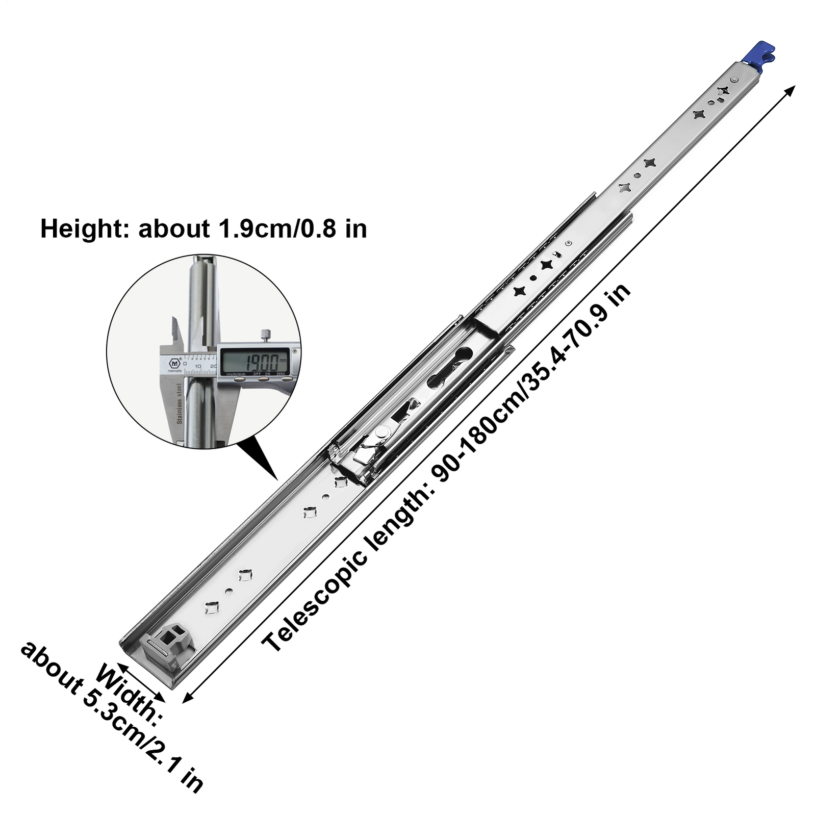 Heavy Duty Drawer Slides 265lbs Ball Bearing Full Extension 36" with Lock Bullet Points: Revolutionary Improvement: Our Cabinet Drawer Slides showcase a unique design: featuring three-section drawer slides and retractable sliding parts: that ensure optimal utilization of drawer space. Its unique 2.5mm thickness allows convenient storage of items of all sizes, making organization simpler than ever before. Strong Material: Crafted from robust cold-rolled steel with a rust-proof finish, our Cabinet Drawer Slides boast a strong structure that is wear-resistant, not easy to deform, and can support up to 120kg of weight, making them an ideal choice for heavy-duty use. Silent Glide: Our Cabinet Drawer Slides boast a double lock system that secures drawers and prevents accidental movement. With a double-row steel ball arrangement, experience silent and seamless use while minimizing direct touch between channels for a more hygienic use. Easy Installation: Get your drawer slides installed in a snap with our pre-drilled mounting holes and hex socket screws. Designed for side-mounted drawers with 0.75-inch clearance, ensuring a perfect fit for your cabinetry. Widely Used: Enhance your indoor furniture, RV, and various storage solutions with our versatile Cabinet Drawer Slides, tailored for diverse needs from shoe to industrial cabinets. Upgrade your cabinet with our Cabinet Drawer Slides. With a unique design, rust-proof material, and 0.75-inch mounting distance between drawer and cabinet, it reduces direct touch between channels. Perfect for storage cabinets, shoe cabinets, and industrial cabinets. Specifications: Product name: Slides for Drawers Product size: about 80cm(31.5 inches)/ 90cm(35.43 inches)/100cm(39.37 inches)/120cm(47.24 inches) Maximum load: 120 kg Color: Silver Lockable: yes Width: 53mm Material: cold rolled steel Packing List: Slide rails*2 Locks*2 Screws*1 bag We accept PayPal payment,PayPal Credit,Credit card or debit card and so on. Payment should be completed within 4 (Four) days of auction closing. Or unpaid dispute will be filed for closing auction. We will leave a positive feedback immediately after payment is received. We appreciate a positive feedback as much as you do. If for some reason there is any issue with the purchase, please contact us prior to leaving feedback, we will be glad to work together and provide a satisfying solution. 1. We ship to your eBay address. Each package will be shipped via FedEx or UPS 2-8 business days with tracking number 2. Please check your shipping address carefully before checkout, it can't be changed if order completed. 3. Shipping within 1 business days once payment completed. Orders placed on weekend will be delay 1-2 days. 4. Please allow 6 business days for delivery to any destinations. 5. As a buyer, it is your duty to pay the tax when you make an order from abroad. Our price does not include taxes, VAT, or other hidden charges. 1. We maintain high standards of excellence FIVE STAR and strive for 100% customer satisfaction! 2. Positive Feedback is very important to us. We hope that you contact us immediately BEFORE you give us neutral or negative feedback, so that we can satisfactorily address your concerns. 3. We promise to offer the best price and high quality products. 1. If you have any questions, please send a ebay message. 2. We will reply within 48 hours of your email. Weekend will be delayed a bit.