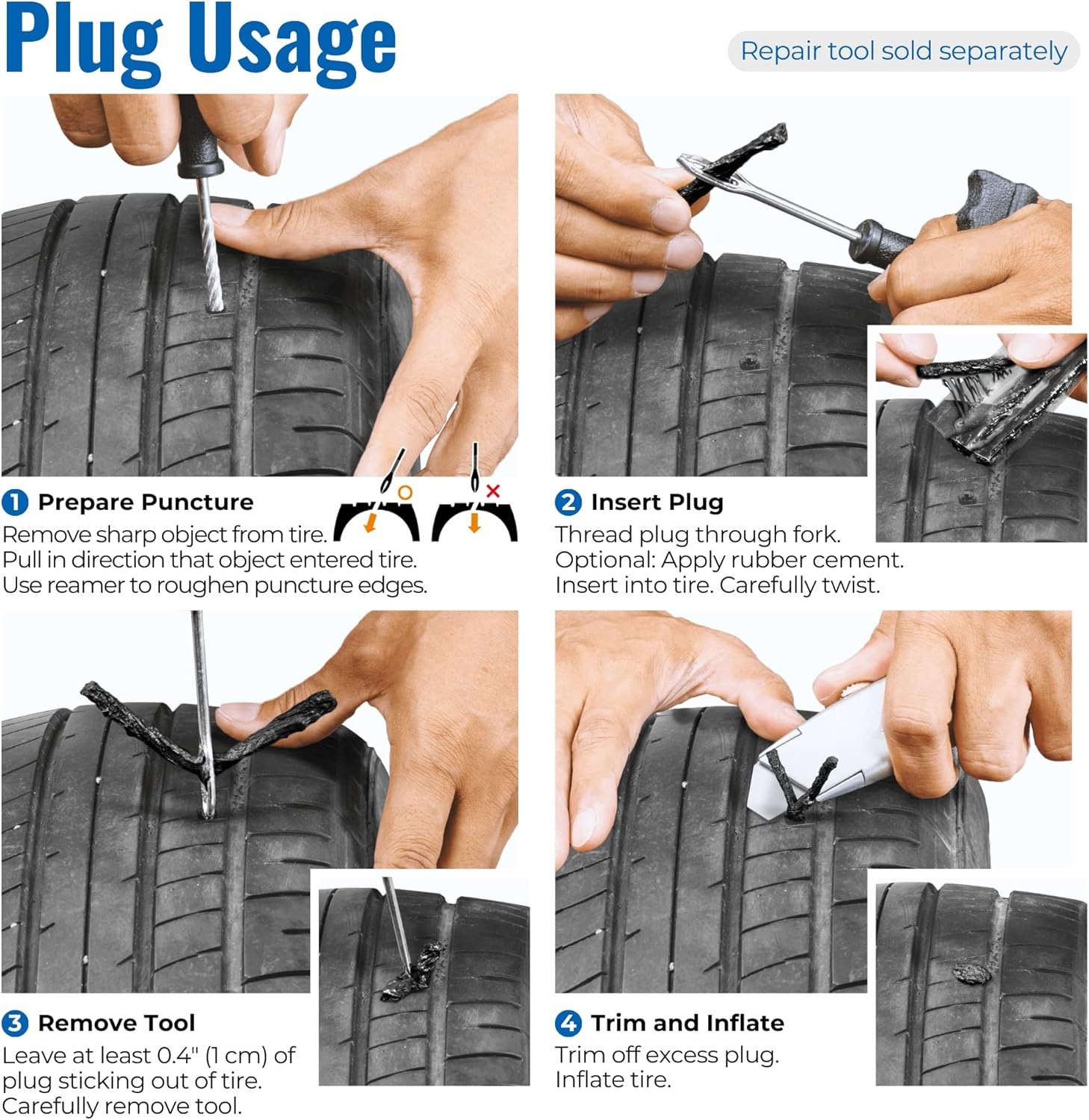 Tire Plugs Heavy Duty (4", 30 Pack) - ⌀1/4" (6mm) Tubeless Plug 4" Description: Features: Quick Puncture Repair: 30-pack heavy duty tire plugs for tire repair. Efficiently fix punctured tyres in no time. Complete your flat tire plug kit with these car tire plugs or string refill. Large Hole Compatibility: 4" (100mm) long tire repair plugs for larger ⌀1/4" (6mm) punctures. 30-pack of professional grade tire strips refill. Durable butyl rubber tire plugs (tool not included). For Tubeless Tires: Compatible with many tire plug kit heavy duty for professionals. Keep your auto tire repair kit stocked with ⌀1/4" (6mm) replacement repair plugs. Tire plug tool not included. Bulk Pack: Include 30 high-quality thick large tire plugs. Keep patch plugs for tire repair handy to avoid expensive towing or roadside emergency services. Essential for your tubeless tire repair kit. Easy to Use: Insert tire plugs for cars with a tool (not included), twist slowly, remove fork, trim. Self-vulcanizing strings create secure bond with tire. For punctured tread, NOT for sidewall. SHIPPING: We are always working hard to ensure your package arrives as soon as possible. Please understand that some factors like weather, high postal traffic, and the performance of shipping companies are outside of our control. We offer free shipping to the lower 48 states and ship within 3 business days of payment, usually sooner. We do not accept P.O. Boxes. Please provide a physical address. For shipping outside of the continental USA, we only use eBay's Global Shipping Program. The item is shipped to KY and then sent to the rest of the world. International customers are responsible for all duties and taxes. Continue to check out in order to calculate costs for shipping the item to your country. Messages regarding eBay's Global Shipping Program MUST be directed at eBay EXCLUSIVELY. PAYMENT: We accept payment by PayPal only (Can accept all kind of credit cards). Please pay as soon as possible after winning an auction, as that will allow us to post your item to you sooner. Payment must be received within 3 business days of auction closing. Before buying, please make sure your PayPal and eBay address is correct. If not, please correct it before payment. We have confidence in our products, but if you are not fully satisfied please contact us within 30 days of purchase and you will get full refund of your money. Return the product in the same condition you received it. Please note - return shipping will be paid by the buyer.