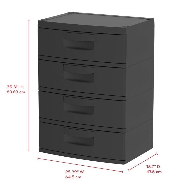 You may also like Heavy Duty 4 Tier Plastic Garage Shelf Tool Free Assembly Storage Solution New 40.85 USD 43.0 USD Free shipping 5% off 5-Tier Storage Garage Shelf Heavy Duty Shelving Unit Utility Organizer Durable 103.21 USD 108.64 USD Free shipping 5% off 5 Tier Garage Shelves Storage Freestanding Organizer Garage Indoor 30x14x70" New 73.62 USD 77.49 USD Free shipping 5% off Garage Tool Storage Rail Shelving Kit 36" Wall Mounted Heavy Duty Organizer Rack 98.32 USD 103.49 USD Free shipping 5% off This 35. 31inch Height Black Plastic 4 Drawer Garage Storage Cabinet is a great solution for all your storage needs. This is perfect for any space where you might need a reliable and sturdy cabinet, such as, the garage, your home, basement, utility room, or closet. With the easy sliding oversized drawers that hold up to 30 pounds each, you have a convenient storing method for all of your belongings. It is made from a durable and long-lasting black polypropylene plastic that is built for years of use. com. 30 lbs. per drawer capacity when evenly distributed Made of durable black Polypropylene plastic Great for the garage, basement, utility room or closet Perfect for holding garden tools, garage items, craft supplies, or miscellaneous items Hidden rollers for drawers to glide smoothly No assembly required Total dimensions: 18. 7" (D) x 25. 39" (W) x 35. 31" (H) Total weight in packaging: 26. 7 lbs. Easy to clean Model Number: HT-4DWR-BLK 3 Year Limited Waranty m. – 9:00 p. m. CT You may also like Oven Bake Modeling Clay Kids & Adults Non-Toxic Polymer Crafting Material New 9.59 USD 10.1 USD Free shipping 5% off Mission Style 5-Shelf Bookcase Solid Wood Tall Storage Organizer Kids Room New 75.8 USD 79.79 USD Free shipping 5% off Hot Cold Foot Massage Roller Ergonomic Arch Relief Plantar Fasciitis Heel Pain 13.51 USD 14.22 USD Free shipping 5% off 4-Piece Hook & Pick Set Ergonomic Grip Carbon Steel Rust Resistant Tools New 10.79 USD 11.36 USD Free shipping 5% off Holy Garlic All Purpose Seasoning BBQ Rub Chicken Pork Veggies Grilling New 8.39 USD 8.83 USD Free shipping 5% off L-Arginine Heart Health Supplement Capsules 500mg Amino Acid Dietary 100 Count 10.59 USD Free shipping Durable Three Compartment Storage Box Organizer Office & School Supplies New 9.24 USD 9.73 USD Free shipping 5% off Gilded Birds Ceramic Wastebasket Decorative Indoor Garbage Can Elegant Design US 49.46 USD 52.06 USD Free shipping 5% off Outdoor Water Fountain LED Lights Cherub Angel Stone Garden Decor Patio Lawn New 169.61 USD 178.54 USD Free shipping 5% off Square Ceramic Planter W/ Drainage Hole Ideal Indoor Plants Flowers Ferns New 10.93 USD 11.51 USD Free shipping 5% off Urine Stain Odor Remover Spray Multi Surface Cleaner Pets Rugs Tile Concrete New 10.06 USD 10.59 USD Free shipping 5% off Large Floating Sticks Fish Food Cichlids Oscars Piranhas Arowanas ProCare New 22.2 USD 23.37 USD Free shipping 5% off