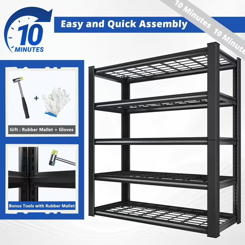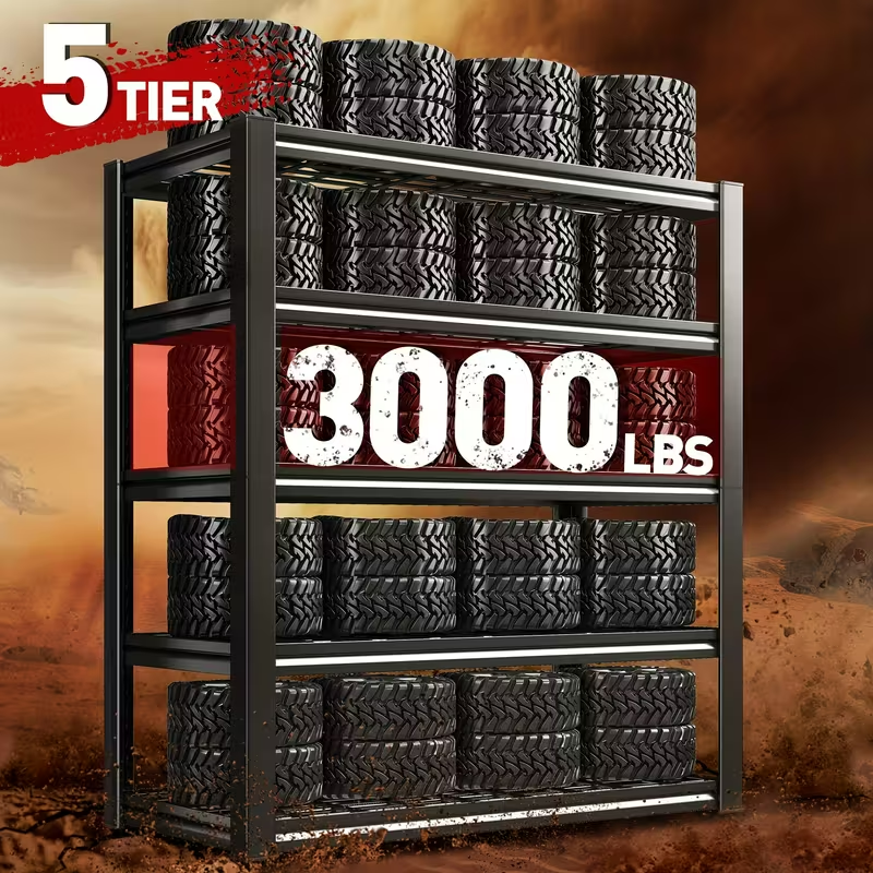 Organize your garage, basement, pantry, or workshop with this Heavy Duty 5-Tier Metal Shelving Unit designed for high-capacity storage. Each shelf supports up to 2000–3000 lbs , making it ideal for tools, bins, boxes, automotive supplies, inventory, and more. Built from industrial-grade steel with adjustable shelves, this storage rack provides a stable, durable storage solution that helps keep spaces tidy and functional. The clean metal finish looks great in any utility area, and the customizable shelf height lets you fit items of all sizes. Features: • Heavy duty metal shelving with up to 3000 lbs capacity per shelf • 5-tier design maximizes vertical storage space • Adjustable shelves for custom organization • Ideal for garage, basement, pantry, closet, workshop, utility room • Durable construction for long-term use • Great for tools, boxes, bins, and heavy-duty storage needs Perfect for anyone who wants to get organized with a strong, reliable storage solution.