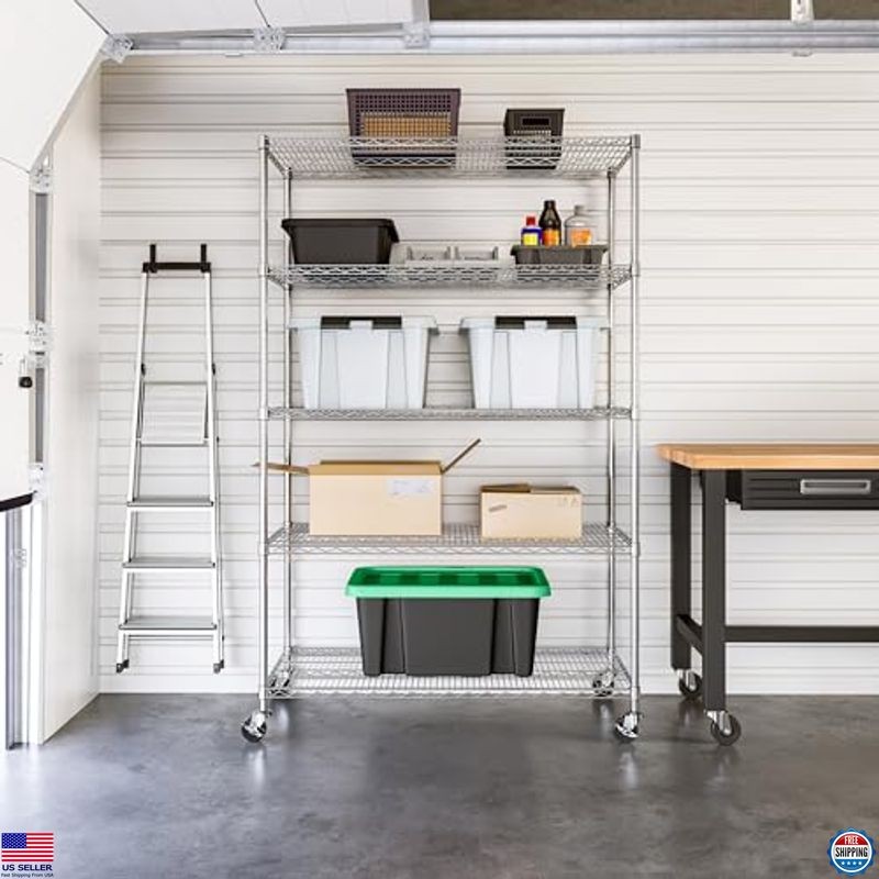 Seville Classics UltraDurable Heavy Duty NSF Solid Steel Wire Rack Storage Unit Organizer for Garage, Warehouse, Office, Restaurant, Classroom, Kitchen, 5-Tier Shelving, 48" W x 24" D Description Maximize your storage potential with the Seville Classics UltraDurable® 5-Tier Commercial-Grade Steel Wire Shelving System. Crafted from industrial-strength, NSF-certified steel, this versatile shelving unit measures 60”W x 24”D x 76”H and supports up to 800 lbs. per shelf, making it perfect for any workspace. Easily adjustable and equipped with heavy-duty wheels, this system combines durability and convenience for all your organizing needs. Product reference: B07BT69ZKS. Features Ultradurable DIMENSIONS - Overall dimensions are 48"W x 24"D x 76"H (72”H on leveling feet). 5 ADJUSTABLE SHELVES - 48" x 24" commercial-grade heavy-duty shelves are height adjustable at 1” increments. WEIGHT CAPACITY – 800 lbs. per shelf (4,000 lbs. total on leveling feet and 500 lbs. total on wheels). NSF-CERTIFIED STORAGE - Certified by the NSF to NSF/ANSI Standard 2 - Food Equipment for use in dry environments. INDUSTRIAL GRADE STEEL – Solid steel construction for both home, business, and commercial use. CONVENIENTLY MOBILE – Durable 4" wheels (2-locking) with metal hardware allow for easy mobility; bonus leveling feet included. Shipping Free & Fast Shipping: We offer free shipping to most of the USA with a normal delivery time of 3-7 days. However, due to the current situation, additional delivery time (up to 3 weeks) may be required for some items. Alternative Carriers: We may use alternative carriers (e.g., USPS, FedEx, UPS) to ensure your package arrives safely and on time. Due to the use of multiple carriers, we are unable to provide a tracking number automatically. Handling Time: Orders are processed and shipped within 1-2 business days of receiving cleared payment. Shipping Restrictions: Shipping to Alaska, Hawaii, Puerto Rico, Guam, and other US territories may incur shipping charges or delivery restrictions. Please contact us before ordering, or your order can be refunded/cancelled. State Restrictions: Certain items may not be shipped to California due to state regulations. Contact for Tracking Updates: If you require tracking updates or have any concerns about the delivery of your order, please feel free to contact us, and we will be happy to assist you. Return Policy 30-Day Hassle-Free Returns: If you are not completely satisfied with your purchase, you can return the item for free within 30 days of receiving it for a full refund or exchange. Easy Return Process: Contact us, and we will provide you with a prepaid return shipping label and detailed instructions. No Restocking Fee: There are no restocking fees for returns. However, the buyer is responsible for return shipping costs if the return is not due to a seller's error. Refund Processing: Refunds will be processed within 1 business day of receiving the returned item in its original condition. Payment We accept all major credit cards, PayPal, and Pay for your convenience. Your payment information is secure and encrypted to ensure a safe and seamless transaction. Please complete your payment within 3 days of purchase to avoid any delays in shipping. Feedback Your feedback is extremely important to us. We strive to provide the best products and customer service possible. If you are satisfied with your purchase, please take a moment to leave us a positive review. If you have any concerns or issues with your order, please contact us before leaving negative fee...