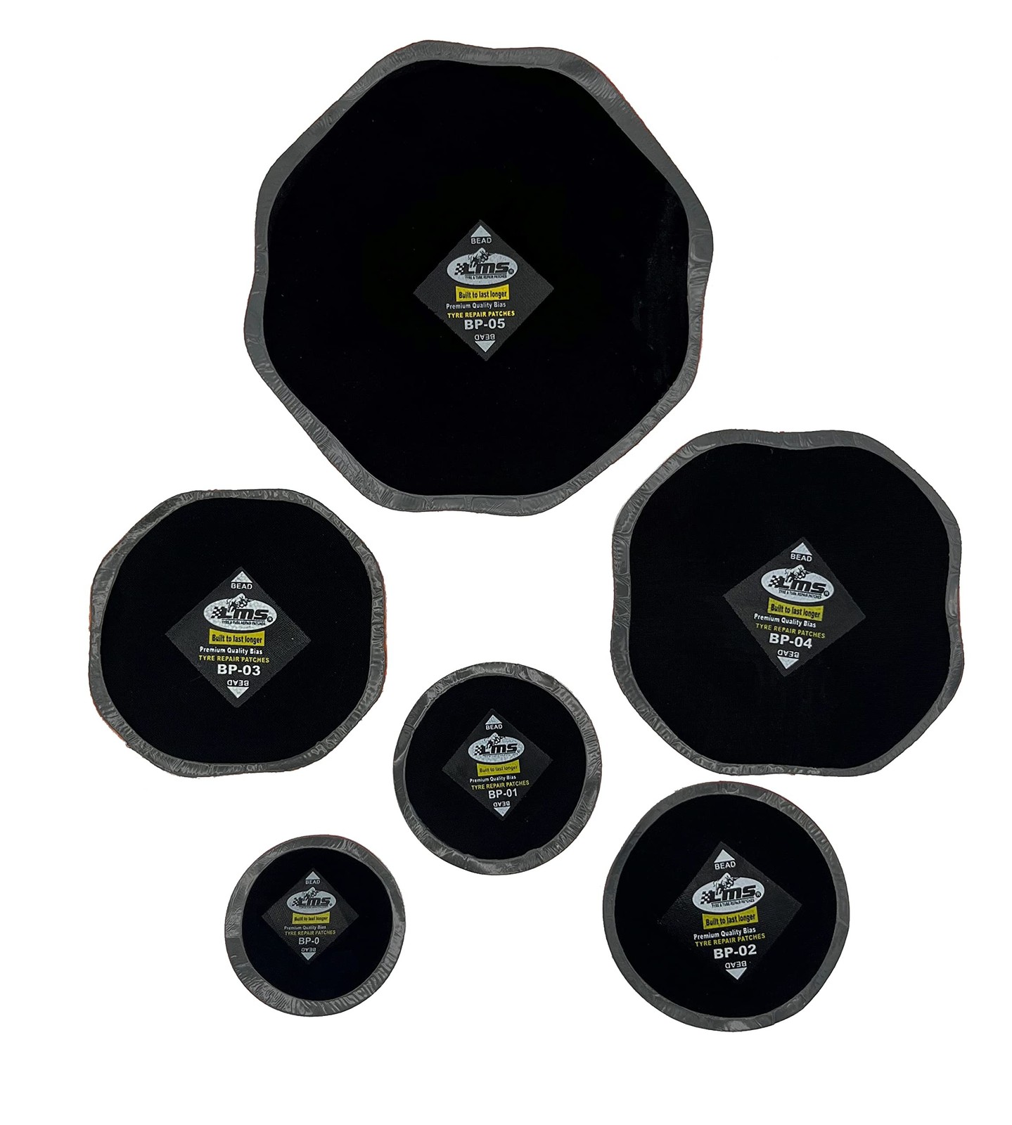 LMS Heavy Duty Reinforced Bias Tire Repair Patches BP-05 (7"x7") Product Details Size: 7"x7" Brand: Veteran Tire and Rubber MPN: BP-05 UPC: 810067460873 EAN: 0810067460873 Manufacturer: LMS Brand: Veteran Tire and Rubber Item Weight: 2.75 pounds Product Dimensions: 7 x 7 x 0.3 inches Manufacturer Part Number: BP-05 Date First Available: September 15, 2022 The LMS BP-05 bias ply tire repair patches (10 pack) For use in bias ply tire repairs up to 2" (50mm) Tools and vulcanizing chemicals not included. Patch size 7"x7". Nylon reinforced 4 ply Four nylon ply construction for reinforced repairs. NOT FOR USE IN RADIAL TIRES - Intended for professional installation The BP line of bias tire repair patches are perfect for all bias ply commercial, farm and industrial tires.