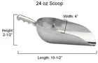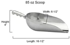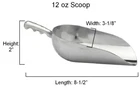 Cast Aluminum Metal Scoops - This heavy duty durable cast aluminum material is an excellent alternative to stainless steel - 5 oz capacity: 7-1/4" x 2-3/8" x 1-3/4" - 12 oz capacity: 8-1/2" x 3-1/8" x 2" - 24 oz capacity: 10-1/2" x 4" x 2-1/2" - 38 oz capacity: 11-7/8" x 4-3/4" x 3" - 58 oz capacity: 14-3/4" x 5-1/2" x 3-1/2" - 85 oz capacity: 16-1/2" x 6-1/2" x 4" - Measurements are approximate (length x width x height) - Perfect for candy buffets, weddings, flour and other ingredients in the kitchen, ice, etc. - The capacity of each scoop is engraved on the bottom of the handle ** This item is not dishwasher safe. Wash by hand only!** The more you buy, the more you save!
