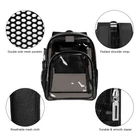 Backpack Material: TPU What are the benefits of using TPU? Thermoplastic polyurethane, other wise known as TPU, can be found in numerous applications. The basic attributes that place TPU above other materials includes its extremely high wear resistance and resilience, good compression, durability, low temperature flexibility, superior tear strength, high elasticity, transparency, and excellent process ability. Multi-functional Compartments Dimension: 17.2x14x5.7 inches (H x L x W) A large main compartment is enough to hold a 17.3-inch laptop, books and other stuffs. A small inner mesh bag for cell phone, wallet, cards and other small items. A front compartment for tablet, notebook, post-it notes, etc. Two mesh side pockets for water bottles, umbrellas, etc. Appropriate Occasions The backpack adopts a fashionable and practical transparent design, allowing users to quickly view the contents of the bag without searching, satisfying work, gymnasiums, libraries, museums, tourism, outdoor sports, concerts, security checks and other places. Even going out shopping is fashionable Good choice to wear. Thick and Durable: The transparent backpack is made of environmentally friendly TPU material, which makes it have better softness, thickness, odorless, wear resistance, anti-freeze crack and other good properties. Large Capacity: size: 14x17.2x5.7 in; built-in a large-capacity main compartment, a small inner mesh pocket, a front compartment and two side mesh pockets, which can store your laptop, books, notes, Mobile phones, pens, umbrellas, water bottles and other items. Ergonomic Design: backpack uses a thicker breathable mesh design, which is wider and thicker than others to reduce the pressure on the shoulders and improve the comfort of the body. Reinforced Stitches: The heavy-duty clear backpack uses reinforced cross stitches to secure the straps and provide a longer service life, which is very suitable for daily use. Appropriate Occasions: The backpack adopts a stylish and practical transparent design, allowing users to quickly see the contents of the bag without searching, satisfying work, stadiums, libraries, museums, tourism, outdoor sports, concerts, Security inspections, and other places. NOTE: THIS ITEM IS NOT INTENDED FOR USE BY CHILDREN 12 AND UNDER.