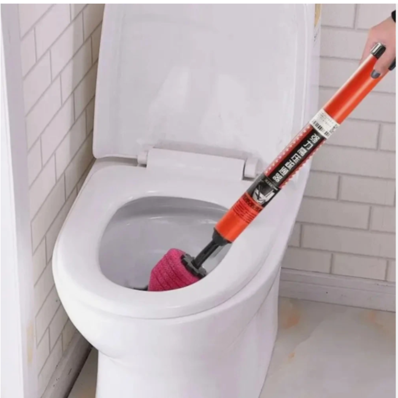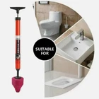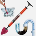 High Pressure Pneumatic Toilet Plunger – Powerful Drain Clog Remover Tool Clear stubborn blockages quickly and easily with this high-pressure pneumatic toilet plunger. Designed with a durable ABS sliding handle and ergonomic grip, it delivers strong air pressure to remove clogs without the need for harsh chemicals or expensive plumber visits. Lightweight yet powerful, this reusable tool is built for long-term use. Key Features: High Pressure Power: Delivers up to 120 PSI air pressure to break through tough clogs in seconds. Durable Construction: Made from strong ABS plastic that resists deformation and rust. Ergonomic Design: Comfortable grip with large force area for easy pumping and operation. Splash Protection Tip: Cover with transparent film during use to prevent splashing. Multi-Purpose Heads: Suitable for toilets, sinks, floor drains, washbasins, and pipes. Effective on Various Blockages: Removes debris such as hair, grease, cloth fibers, leaves, and more. How to Use: Ensure the drain cover can be opened. Make sure there is water in the pipe. Insert sealing head firmly into the drain. Pump air about 5 times quickly. Remove head and refill pipe with water. Repeat if needed until clear. Specifications: Material: ABS Plastic Color: Orange-Red Size: 67 × 11.5 cm Package Includes: 1 × High Pressure Pneumatic Toilet Plunger Tool
