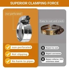 Heavy Duty Hose Clamp Kit - 44PCS,1/4''- 1-1/8'' Adjustable Worm Gear Drive Hose 1. Upgraded Design - Compared to traditional perforated bands, our stainless steel band features a hole-free design, thick and wide, which is hardly affected by over-tightening, deformation, and peeling. This is due to its thicker metal and embossed strap, which can protect the hose from shearing or crushing. Our hose clamp screw is big with deep thread. and the welded worm gear housing can increase the breaking torque by 65%. These hose clamps are high-pressure, providing excellent clamping force and secure sealing. 2. Adjustable Size - The slotted screw is equipped with a hex head. It can be quickly tightened using a screwdriver or a nut driver.The non-perforated hose clamp is flexible and extensible, with adjustable width, and the size range is from 1/4''- 1-1/8''. 3. High Quality Material - Our tubing clamps are made of high quality 304 stainless steel, including the housing, screws, and band. They are compatible with SAE J 1508 standards and ideal for 3/4 silicone heater hose, garden sprinkler, and more. The neutral salt spray(NSS) test is 120 hours, and our SS 304 screws are plated for smooth tightening, enhancing corrosion protection level and meeting the marine grade hose clamps requirement. 4. Hose Protection - Our worm gear hose clamps are designed with a rolled band edge to prevent damage to soft silicone, PVC, or rubber hoses. The non-perforated band prevents extrusion through the band notches, ensuring reliable performance for garden water line tubing, heater pipes, and automotive repairs. 5. Versatile Use - Our clamps are perfect for securing hoses, pipes, cables, tubes, fuel lines, and more. They can be used in automotive, industrial, boat/marine, shield, household, and outdoor settings.