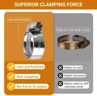 1. Upgraded Design - Compared to traditional perforated bands, our stainless steel band features a hole-free design, thick and wide, which is hardly affected by over-tightening, deformation, and peeling. This is due to its thicker metal and embossed strap, which can protect the hose from shearing or crushing. Our hose clamp screw is big with deep thread. and the welded worm gear housing can increase the breaking torque by 65%. These hose clamps are high-pressure, providing excellent clamping force and secure sealing. 2. Adjustable Size - The slotted screw is equipped with a hex head. It can be quickly tightened using a screwdriver or a nut driver.The non-perforated hose clamp is flexible and extensible, with adjustable width, and the size range is from 1/4''- 1-1/8''.