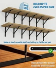 Inch Shelf Brackets & Supports, Large Wall Brackets for Garage Storage, Heavy Duty Shelf Support Angle Brackets, 90 Degree Triangle L Brackets, 8 Pack PERFECT FIT: This L shelf brackets fit the nominal ” - 22” deep lumber board, measure ” x 11-3/4” x 1” HIGH QUALITY: Unlike the normal painting material, power frosted black coating ensure its rust-resistance and anti-coating off HEAVY DUTY: Each heavy duty steel shelf bracket with upgrade quality screws carry up to 130lb, enough for daily use (260lb per pair) ALL-MATCH STYLE: Maximize space with with style. Fit for the kitchen, bathroom, bedroom, office & more. MAKE IT EASY: We provide installation manual and offer 90 days no reason satisfaction or offer new free SATISFACTION GUARANTEEd
