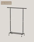 High Quality Clothes Rack: The industrial clothing rack is made of premium metal, extremely durable and long lasting, has good weight capacity, can hold heavy items without bend. The extend hanging rod can be hanging your clothes and bags, and the double rail at the bottom can be used to place shoes or boxes. It do helps you storing shoes, umbrella, bags and hanging clothes very well. Mobile Clothes Rack: This rolling clothes rack has 4 wheels that make it easy to move this clothes rack to different rooms, the portable clothes rack easy to roll even fully loaded with clothes, and for added convenience, 2 of the wheels can be locked to keep the rolling clothes rack stationary. Multi-Functional Clothing Rack: The heavy duty clothing rack designed with rolling clothing rack, shoe storage shelf and umbrella rack together. It is not only suitable as a hanging rack in the bedroom, a drying rack in the laundry room, but also can be used as an commercial clothes rack to show beautiful clothes in the store. Dimension: The gold clothing rack’s size is 46.9”L x 16.5”W x 61.8”H, the extend rod is 7.9”L, the load capacity of this metal clothing rack is 110 lbs. Easy to Assemble: The product has a detailed manual and installation tools attached, it only takes 15 minutes to complete. If you have any issue about this rolling garment rack, please feel free to contact us.