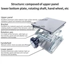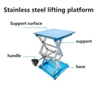 Heavy Duty Laboratory Scissor Jack Lift Table,Stainless Steel, Plate 100x100mm,Lab Lift Platform Lab Jack Scissor Stand Platform Description: Type: manual Specification: 10cm square Type: stainless steel Model: 10cm Lifting height: 380mm Scope of application: laboratory Maximum weight: 25kg Specifications: 1. Purpose: The lifting table is a supporting instrument used to adjust the position and height of objects. It is used for lifting objects or instruments in physics, chemistry and biology experiments in middle schools. 2. Structure: composed of upper panel, lower bottom plate, rotating shaft, hand wheel, etc. 3. Use method: place the lifting table stably, and rotate the handwheel to adjust the upper panel of the lifting table to the required height. 4. Bearing surface: Made of high-quality stainless steel, it has strong compactness, is not easy to rust, has good corrosion resistance, and is solid and durable. 5. Support: It is made of galvanized material, which is not easy to be corroded, has stable structure, and is strong and durable. 6. Handle: Bakelite handle, precise height adjustment, accurate and convenient. 7. Base: stainless steel base, padded at four corners, flat and stable to ensure stable lifting. Package Included: 1 * Stainless steel lifting table