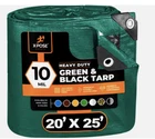 This heavy-duty polyethylene tarp is ideal for various outdoor activities such as camping, boating, and gardening. Its 20 feet by 25 feet size and 10 mil thickness make it durable and waterproof, with laminated and rust-proof grommets for added protection. The tarp is reversible and comes in a green and black color scheme, with a brand name of Xpose Safety. This tarp is perfect for app 1, which includes car covers, general cover tent, camping ground sheet, and boat covers. It is also suitable for app 2, which includes haystack cover, lumber covers, wind protectors, and privacy walls. The tarp is made in China and is a great addition to your outdoor essentials.