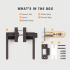 EASY INSTALLATION: Install your leverset in a flash. All you need is a door and a tool set! No need for professional door fitters, you can do it yourself! PRIVACY FUNCTION: The door lever can be locked inside and opened outside in emergency WITHOUT keys. Use it for your guest rooms, bedrooms, bathrooms, interior locking doors and other privacy needs; Material: Zinc Alloy; Finished Color: Oil Rubbed Bronze. ONE SIZE FITS MOST: This Bronze door lever fits 1-3/8" to 1-3/4" doors; Reversible for both left handed and right handed doors. (Notice: The latch plate is unremovable.) HEAVY DUTY: The solid zinc alloy and brass, smooth finish, polished appearance and substantial, easy-to-grasp lever will subtly elevate and enhance commercial areas or residences alike. CLASSIC DESIGN: It's not just a door lever — it's a statement piece. These gorgeous levers with no protruding flanges, screws or rough edges ensures completely safe and easy operation, are sure to add a touch of sophistication to your home.