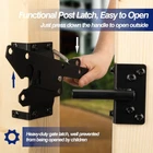 Heavy Duty Self-Locking Gate Latch for Wooden Fence, Post Mount Black Product Details Manufacturer: HTHOOOOOME Part Number: DYW Gate Latch Item Weight: 1.72 pounds Product Dimensions: 7.91 x 6.73 x 2.44 inches Item model number: DYW Gate Latch Color: Black Material: Wood Alloy Steel Item Package Quantity: 1 Batteries Required?: No 【Safety Protection】HTHOOOOOOME self-locking latch fence gate is made of strong and thick high-quality steel, which utilizes gravity locking, which can well protect infants, toddlers, and pets outside. And can also prevent predators from entering the yard. 【Easy to Install】Our gate latch features a heavy duty design and self-locking fingertip release, and the kit includes left and right parts for easy and convenient installation. 【Ultra-high quality】 Heavy door locks are made of sturdy steel. The black surface treats powder coating to corrosion resistance and does not rust, which can extend the service life of the gate latch. Can be used for the left or right door. 【MULTIPLE USES】The self-locking gate latch can provide security for your backyard, garden, baby gate, privacy fence, swimming gate, garage door, and even chicken coop door. 【Contents Included】Our hardware kit includes a gravity bar handle 9.1x3.2 inches, a door mount, and 13 self-locking 0.9 inch screws.It can be installed with the kit in the self-locking gate latch.