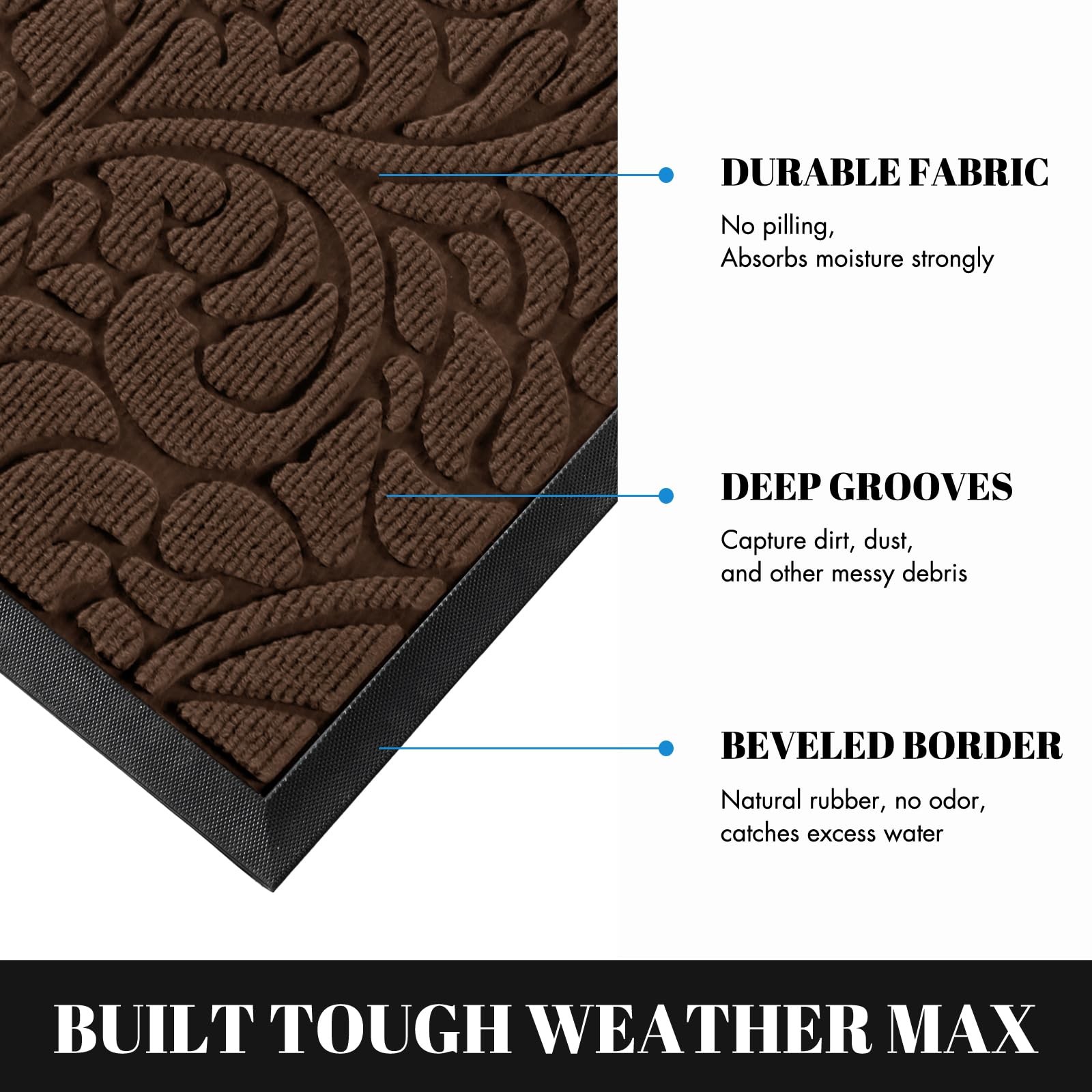 welcome mats outdoor doormat welcome mat outdoor front door mat outdoor entrance doormats entry mat outdoor front door mat rubber door mats outdoor rubber door mat outside door mat outdoor door mats entrance mat doormat outdoor door mats for outside entry doormats for outdoor entrance home outdoor doormats 【Capture Dirt and Moisture】: door mat adopts deep groove design, forming a detention dam extending in all directions, helping to capture dirt, dust, gravel, mud, sand, grass or other messy debris and prevent them from entering Indoor; The surface of floor mat beautifully woven polyester fabric absorbs moisture, and the sturdy oblique rubber edge will not accumulate water in rainy and snowy days, keeping your home dry and clean 【Non Slip Rubber Backing】: heavy duty outdoor mat, 0.20 inch ultra-thin design, can glide under most doors without jamming or curling. The indoor mat uses a high-quality non-slip rubber backing to help prevent you from slipping when entering or going out, keeping you safe. At the same time, the rubber backing can prevent water and mud from penetrating the floor, keeping door rug in place and not sliding or wear the floor and effectively protect your indoor floor 【Easy to Clean】: doormat outdoor entrance, Just use a vacuum cleaner, or sweep with a broom, or tap the backing and shake the doormat. For more in-depth cleaning, use a washing machine or garden hose to rinse the floor mat, then hang it in a ventilated place to air dry it or use a dryer 【Rugged and Sturdy 】: The surface of this outdoor door mat is made of high-quality polyester, unique Hot-melt Planting Production Process, which is designed to be sturdy , strong and flexible. The doormat in outside can withstand a variety of weather and seasonal changes, whether it is sunny, rainy or snowy 【Wide Use】: outdoor welcome mat are stylish and practical, suitable for indoor use to keep the floors of homes, living spaces, lobbies and offices clean, or outdoor use in front doors, sidewalks, terraces, garages, barns, driveways and many others busy areas; Heavy and sturdy materials, soft and flexible; Simple and stylish design complements any decoration