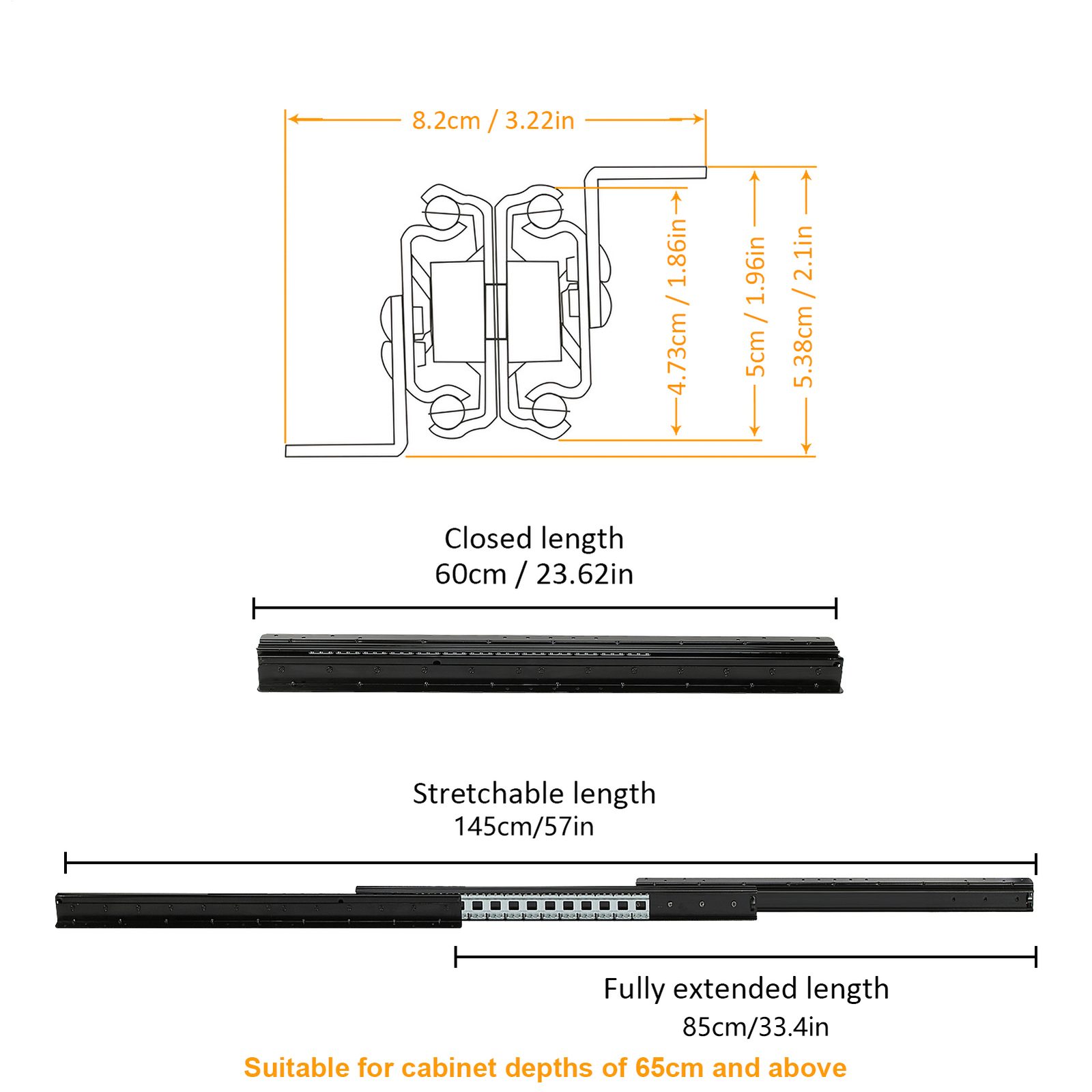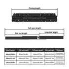 Store category Sign Up Now ! You may also like Product Description Bullet Points: Wonderful Resilience: Constructed from high-density, high-strength 2mm thick cold-rolled steel, these drawer slides boast wonderful durability. The industrial-grade solid steel balls provide heavy load capacity, ensuring a long service life for any heavy-duty industrial application. Smooth and Silent Operating: Treated with electrophoretic coating to resist rust and minimize friction, our heavy duty drawer slides are equipped with industrial-grade steel balls for a silent and smoother sliding experience. Featuring excellent load-bearing capacity, these slides are made of solid steel for lasting durability. Effortless Accessibility: With full-extension, these heavy duty drawer slides allow you to efficiently expand your storage space, providing ample room to screw in stairs during installation and access items easily on a daily basis. Effortless Glide: By adding 12 more steel balls on the same track length, our heavy-duty drawer slides enable gently sliding and labor-saving operating. The anti-collision silencers prevent sticking and noise when opening or closing, making it a strong and stable product. Versatile Mounting: Our heavy-duty drawer slides provide enhanced stability and support for any tall and heavy cabinet, making them ideal for bottom mounting in sundry cabinets, wine cabinets, stair cabinets, and storage units. Don't compromise on stability. Our bottom mounted drawer slides are made of high-density, high-strength 2mm thick cold-rolled steel. They improve the load-bearing capacity of the slide and can be extended efficiently. Our slides are more labor-saving and perfect for your storage cabinets. Specifications: Product name: Heavy Duty Drawer Slides (screws included) Product size: 600/800/1000 mm A about 600 mm/23.62 inches B about 800 mm/31.5 inches C about 1000 mm/39.37 inches Stretching range: 600-1450/800-1850/1000-2250 mm Maximum load: about 120 kg Packing quantity: 1 pair Color: Black Track width: about 94mm/3.7 inches Packing List: 2* Cabinet Drawer Slides Note: Due to different lighting and screen settings, the item color may be slightly different from the picture. Due to different manual measurements, please allow a 1-2cm difference in size. Payment Delivery details Terms of sales About us Feedback & DSRs Payment Before you palce an order, please kindly make sure that you have a paypal account. We accept PAYPAL payment only. Payment should be completed within 2 days after auction closed, or unpaid dispute will be filed for an closing auction. An unpaid case will be filled after 4 days. Delivery details We ship to your eBay address. Each package will be shipped to US by UPS Regular Parcel with tracking number. Please check your shipping address carefully before checkout, it can't be changed if order completed. All items will be shipped within 1-2 business day upon receipt of payment.Orders placed on weekend will be shipped within 3 days. If you do not receive your item in 7-10 business days.please contact us immediately for further assistance. We will be responsible for any damages or losses incurred in the shipping process. About us We maintain high standards of excellence FIVE STAR and strive for 100% customer satisfaction! Positive Feedback is very important to us. We hope that you contact us immediately Before you give us neutral or negative feedback, so that we can satisfactorily address your concerns. We promise to offer the lowest price and high quality produce. Our working time: From Monday to Friday(9:30 am to 18:00pm), we don't working on holidays ,hope you can understand and know that , thank you. Please always talk to us via ebay Message. We appreciate your business and look forward to growing our e-Bay sales with satisfied customers. Feedback Contact us If you have any questions, please feel free to contact with us by ebay Message during our business hours ( 9:30a.m. to 5:30 p.m.), or email us through eBay, we will try our best to help you to resolve it. For any presale or after-sale questions,please do feel free to email us! Due to the time difference, each email will be replied within 1 working day,and weekend will be delayed a bit. Feedback