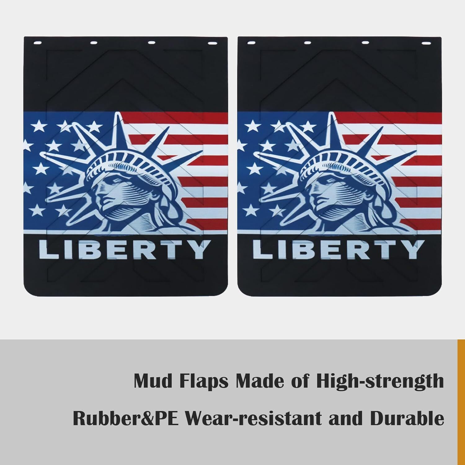 Size: Length * Width:24" x 30"; Made from 1/5 inch thick heavy-duty polymer for durability in severe road conditions. Design: The fenders are crafted to swiftly channel rainwater and debris, preventing accumulation and splashing, while featuring a custom pattern for a unique and personalized touch to your truck. Durability: Made from a robust combination of high-quality plastic and rubber, our mud flaps resist breaking, deformation, and curling. Unaffected by extreme temperatures, ensuring they won't easily deform in either scorching heat or freezing cold. Compatibility: Universal fit for various semi-truck models, including Freightliner, Kenworth, Peterbilt, International, Mack, and etc. Friendly Reminder: Avoid using a high-pressure water gun to clean the fenders with patterns, as this may cause them to detach.RILONH Warranty and Customer Support: Enjoy peace of mind with our one-year warranty.