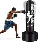 【Boxing Punching Bag with Stand】The kicking bag is 69'' tall, perfect for teers and adults. 0.4mm thickened PVC material make the punching bag more durable. It's a good choice for you to train boxing with this heavy punching bag at-home. 【Material of adult punching bag】This heavy punching bag with stand is made of high-quality eco-friendly 0.4mm thickened PVC, durable and elastic, which will quickly bounce back after being hit/kicked, bring you excellent boxing experience. 【Widened Base punching bag freestanding】27.6'' widened base make the punch bag more stable. Fill the base with water/sand and then inflate it using the air pump. The base weighs 180 lbs when filled with water and 200 lbs when filled with sand. You can fill it with either material or a combination of both to ensure stability. 【Boxing Standing Punching Bag】Compare with the traditional heavy bag, inflatable punching bag for adults can be disassembled and folded when not in use, easier to move. The punching bag can be used in the living room, bedroom, office and any flat ground. 【Ideal Punching Bag for Adults】This adult punching bag with stand is a good gift for yourself, family, friends, colleagues. Inflatable punching bag is good for body building, pressure release, get rid of Internet addiction and training Taekwondo, Boxing, Karate, Muay Thai Fitness. Great to maintain a positive mood and keep a health body.