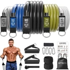 Why choose resistance band suit? 1. When we design a new product, we never skimp on using high-quality materials. Of course, we can use a smaller carabiner to save money, use cheap nylon to make ankle straps, and even make door anchors smaller, but when others choose to go this way, we don’t do this, our products It is a commitment to the high quality of life! 2. The newly upgraded resistance band suit is healthy and harmless, you know you can rely on your fitness resistance band suit! 3. Purchasing products is an investment, and we will ensure that you continue to use them in the next few years! Resistance band suits, exercise bands, exercise bands, fitness training bands 1. They are a great alternative to weightlifting and traditional fitness equipment, and a great choice to meet your home gym and travel need 2. Resistance bands can help you complete any number of training actions, just change your body posture to change muscle tension 3. This makes them very suitable for any type of strength training program. The wristband occupies a small space and is easy to carry. From beginners to fitness experts, anyone can use it The box contains: 1 x Resistance Bands Set 1 x User Guide 1 x Blessing Card 240 lbs Heavy-Duty Resistance Bands Set: Includes resistance bands in different colors: white (10 pounds), gray (20 pounds), blue (50 pounds), grass green (70 pounds), black (90 pounds). progressive resistance training can be used individually or in combination, with resistance ranging from 10 pounds to 240 pounds, suitable for beginners to professionals Elevate Your Home Workouts: resistance bands are made from natural latex for increased durability and elasticity, high standards ensuring a longer lifespan. With 240 pounds of resistance, you can achieve the same results in 1 hour as you would with a 150-pound resistance band in 2 hours Comprehensive Full-Body Training: Ideal for physical therapy, muscle training, and fat burning. They can be used for squats, push-ups, leg raises, planks, and tricep strengthening. Ankle straps are suitable for leg muscle workouts, and women can use them to target their hips, chest, and abs for a ideal body shape Work Out Anywhere: The set includes 5 tube resistance bands, 2 ankle straps, 2 handles, 4 stainless steel carabiners, 1 door anchor, 1 protective belt, and a sports guide, all conveniently stored in a tote bag. The widened handles provide a better grip, and the thickened carabiners are designed for strenuous exercise. You can use them at home, in the gym, or while traveling Safety First: Please note that the resistance bands can only reach their maximum weight when stretched to more than 4 times their original length (180 inches). The absolute limit is at 5 times their own length, which is 220 inches. To prevent injury, do not exceed this limit