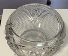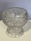 Very Heavy US Glass Massachusetts Clear Pedestal Glass Bowl Stars Arches - 8" Tall, 6 1/2" opening on round top, and 6 1/4" opening on bottom. It appears that you could flip this over and use either way if desired. This pretty vintage piece would look great on display or used at a party, and beautiful with an elegant flower arrangement inside it, or even little gifts or wrapped candies. This pattern is pressed glass which US Glass made beginning in 1898. It is a very heavy piece so very stable wherever it's placed. Please review all pictures carefully as they are part of the description. Questions are welcome.
