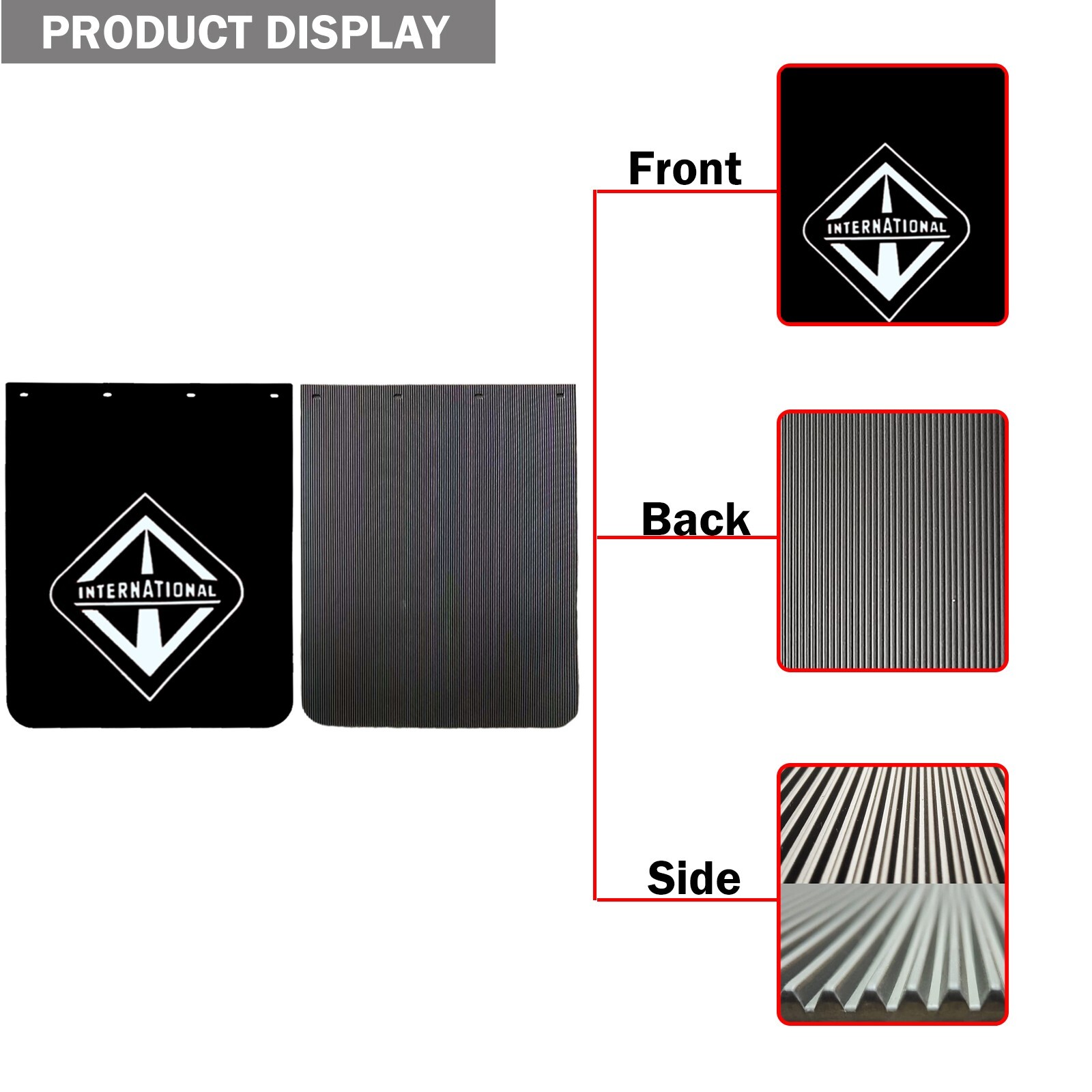 The product is a set of two heavy-duty mud flaps designed specifically for semi-truck trailers. These mud flaps are 24" wide, 30" long, and 3/16" thick, made of durable plastic material in a sleek black color. They are easy to attach with a bolt-on design and are car wash safe as well as washable. The mud flaps come with a 1-month manufacturer warranty, universal fitment, and are vintage parts that can be used on the rear of a vehicle. Made in China, these painted mud flaps offer reliable protection for your vehicle's exterior. Shipping The package will use the United States standard shipping , and we will process the order within 1 working day after the buyer completes the payment. Orders from Saturdays, Sundays or holidays will process on next business day and will be ship within 24 hours. Return We offer 30 days return policy. Please contact us within 30 days from the date you receive your order if you have any issues with the product and would like to return. All returned items MUST BE in the original packaging and you MUST PROVIDE us with the shipping tracking number, specific reason for the return, and your eBay ID. We will refund YOUR FULL WINNING BID AMOUNT, upon receipt of the item in its original condition and packaging with all components and accessories included, AFTER BOTH Buyer and Seller cancel the transaction from eBay. OR, you may choose to have a replacement. Contact Us If you feel that you got an item that is different from what you ordered or if it arrived damaged or if you are not satisfied with the item please email us and we will love to work with you in resolving any issues.