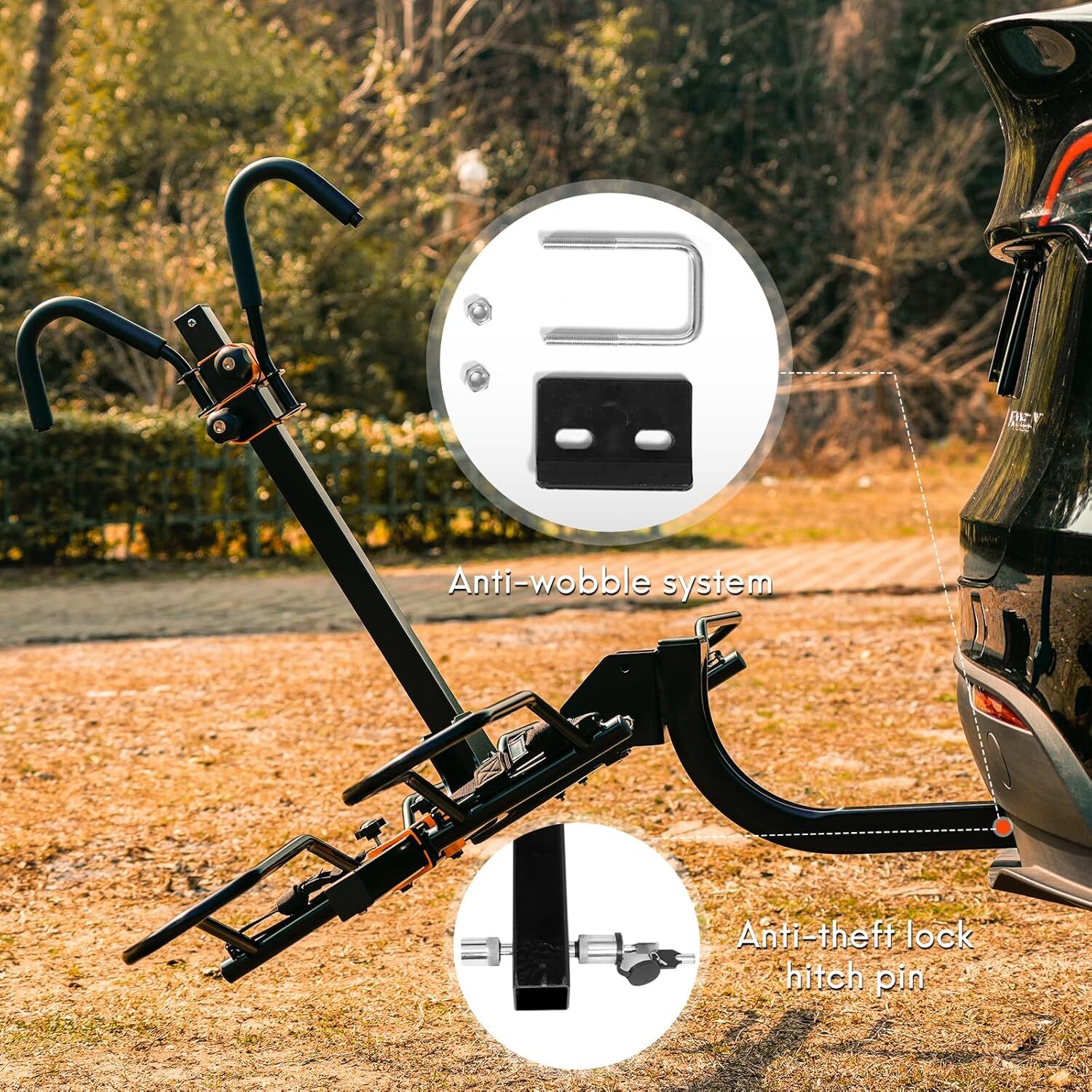 Brand Soarify Item dimensions L x W x H 30.12 x 62.03 x 35.62 inches Load Capacity 140 POUNDS Mounting Type HITCH MOUNT Manufacturer SOARIFY Vehicle Service Type Car Material Alloy Steel Item Weight 34 Pounds Is Foldable Yes About this item đ´ăHEAVY-DUTY CONSTURCTIONă: Built with high-strength alloy steel to support up to 140 lbs, accommodating two bikes of various sizes and types, including eBikes, mountain bikes, and road bikes. đ´ăEASY ASSEMBLY & INSTALLATIONă: Simple assembly with minimal tools required. The rack can be installed and removed quickly and effortlessly. Compatible with standard 2-inch hitch receivers, fitting most cars, SUVs, and trucks. đ´ăTILT-DOWN FEATUREă: Convenient tilt-down mechanism allows for easy access to the rear of the vehicle without removing the bikes. đ´ăANTI-THEFT ROATATION LOCKă: Features a robust anti-theft rotation lock system that prevents unauthorized removal and enhances security. đ´ăFOLDABLE DESIGNă: When not in use, the rack folds up neatly against the vehicle to save space and avoid interference.