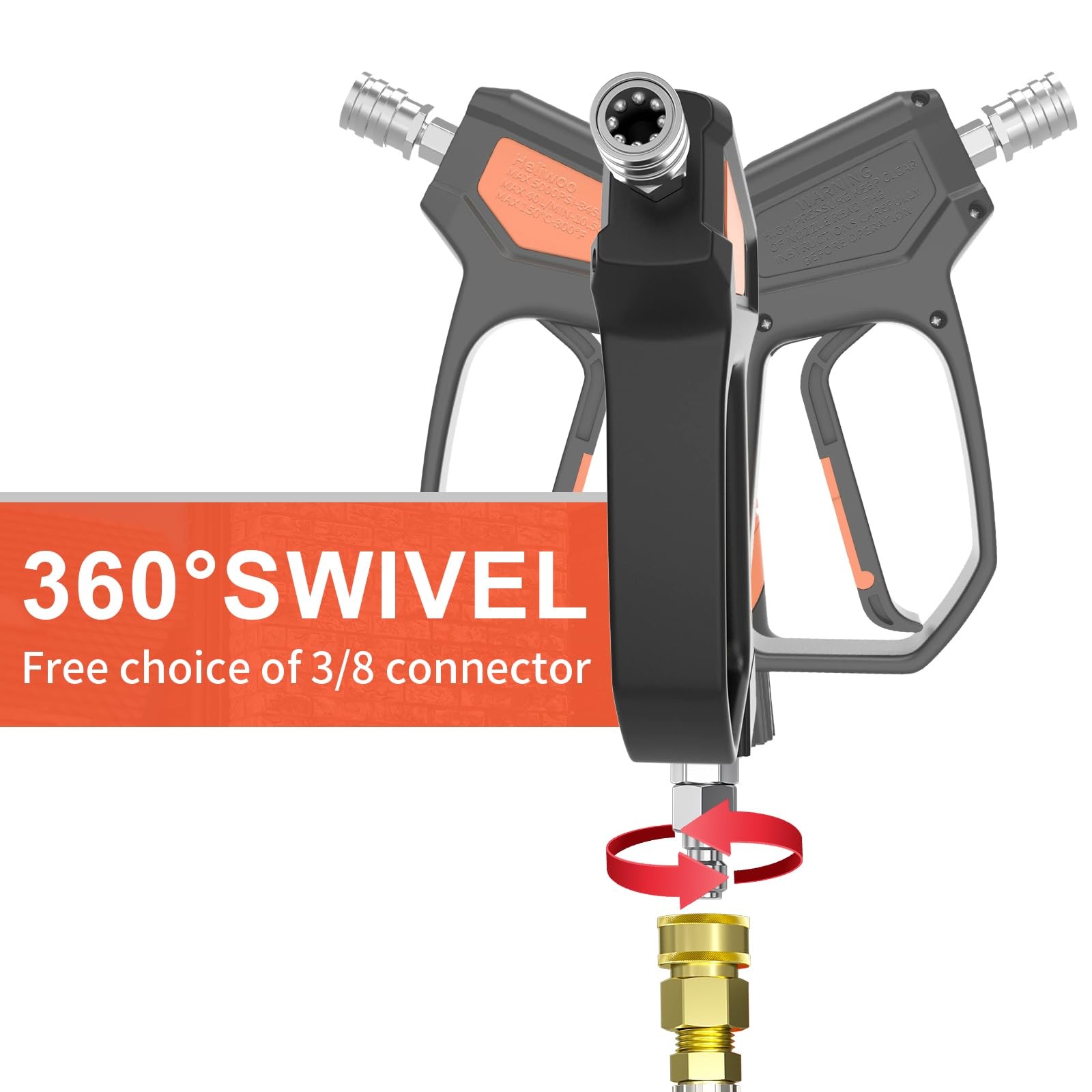 This pressure washer gun is a beast! Handles up to 5000 PSI and 10.5 GPM, making quick work of tough grime on cars, driveways, and more. The swivel plug prevents hose twisting, and the included nozzles offer versatility for any cleaning job. Solid stainless steel construction feels durable, yet it’s lightweight for easy handling. The M22 fittings ensure compatibility with most hoses. Perfect for heavy-duty cleaning without fatiguing your hands—totally worth it!