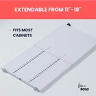 Heavy-Duty Adjustable Cabinet Shelf Organizer | No-Drill Eggshell White Product Details Room Type: Office, School, Home Number of Shelves: 1 Special Feature: Full Metal, Heavy Duty Product Dimensions: 10"D x 18"W x 1.2"H Age Range (Description): Adult Brand: Home in Bold Assembly Required: No Number of Items: 1 Manufacturer: Home in Bold Included Components: Hardware Model Name: LockN'Bold Item Weight: 16 ounces Unit Count: 1.0 Count Item Weight: 1 pounds Item model number: 0009 MaterialMounting Type: MetalPressure Mount Shelf TypeShape: Corner ShelfRectangular No Drilling, No glue: This innovative tension shelf for cabinet, cupboard or pantry offers a stable and secure fit without the need for screws, making it an ideal no screw adjustable cabinet shelf for renters and homeowners alike. Just set the adjustable cupboard shelf as desired width, lock it into place and adjust the thumb screws to secure the fit.