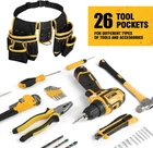 Magnetic Tool Belt for Men, 26 Pockets Heavy Yellow & Black, & Black Product Details Size: Yellow & Black Material: Oxford Fabric Brand: UUP Color: Yellow & Black Number Of Pockets: 26 Closure Type: Buckle Product Dimensions: 11.5"W x 8.7"H Manufacturer: UUP Item Weight: 1.9 pounds Country of Origin: China Item model number: 26 Pockets Item Package Quantity: 1 Included Components: bag Batteries Included?: No Batteries Required?: No Size: Yellow & Black Material: Oxford Fabric Brand: UUP Color: Yellow & Black Number Of Pockets: 26 Adjustable and Detachable:The tool belt features extra long adjustable straps for 31" - 48" waist circumference. The toolbelt is equipped with a quick-release buckle for easy on and off, and the 3 separate pockets are removable depending on the number of tools, allowing you to customize the configuration of the tool belt to your liking Magnetic Tool Belt : The top of the hammer holder and the front of the two pouches are equipped with magnets, super strong magnetism can firmly attract nails, screws and other magnetic items, easy to place and access, and will never be lost again Tool Pouch with 26 Pockets:This Work tool belt has 26 pockets for storing your work tools and 3 magnet zones, providing ample storage space for your nails, screws, hammers, tape measures, screwdrivers, wrenches and other essential tools. The ergonomic pocket location design greatly improves work efficiency Heavy Duty Tool pouch: UUP tool belts is made of high quality oxford fabric with double stitching, each stress point on the belt pouch is firmly fixed with metal rivets, sturdy and durable. Thickened and widened waist belt is comfortable and breathable, which can minimize the pressure and fatigue of the waist. The buckle is firm, the tool belt will be firmly fixed on the waist Perfect Gift: UUP Magnetic Tool Pouch is perfect for electricians, handymen, construction workers, contractors, carpenters, framers, plumbers, tradesman, DIY enthusiast and more. It can also be used for home improvement, housewarming and woodworking. Unique gift tool belt for men, father, husband