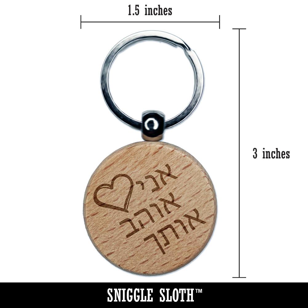 Hebrew I Love Wood Heart Keychain with Engraved Charm