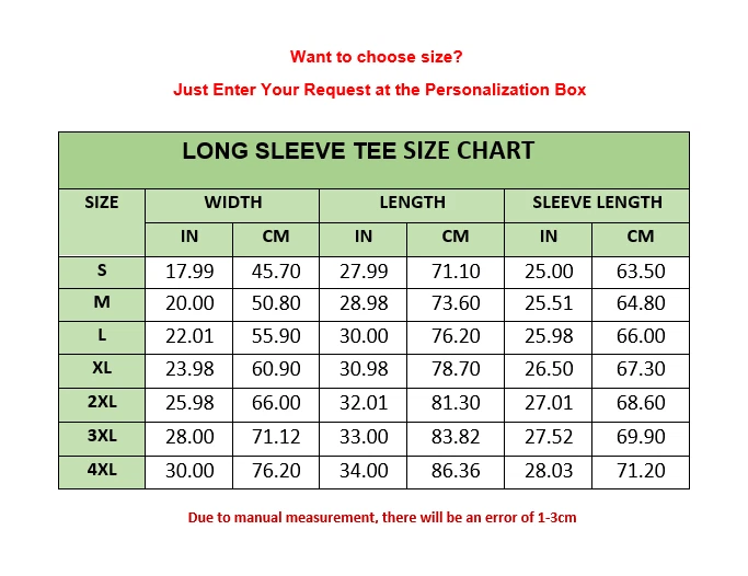 If you are ordering product please message me or note the color and size you require. We have sizes available from S-5XL and prices are the same for all sizes If the product you purchased is a name or number customized product, please note in the Personalization box or send us a message. To ensure the fastest delivery time, customers in each region will receive their shipments from the warehouse located in that region Delivery Time Customers in the USA, Canada: Shipped from the USA warehouse, delivery within approximately 5-9 business days. Customers in the UK and EU: Shipped from the EU warehouse or UK warehouse, delivery within approximately 4-8 business days. Customers in Australia: Shipped from the Australia warehouse, delivery within approximately 4-8 business days. If you want to buy a Sweatshirt, Hoodie or Tank Top but there are no options on the product listed, please message us for assistance. A. ORDER PLACEMENT INSTRUCTIONS Please review all the provided photos. Select your preferred shirt size. Indicate your color preference. Click the "ADD TO CART" button. You can return to add more items for your family or proceed to checkout. If you have added any additional notes, continue by choosing "Proceed to checkout." Your selected shirt will be prepared for shipping. B. PRODUCT DETAILS Experience timeless style and sustainability with this long sleeve shirt, crafted for both comfort and durability. Premium Vintage Feel Made from environmentally-friendly cotton, this fabric offers a thicker, vintage-inspired texture that feels soft and luxurious. Seamless Construction Designed with a tubular knit technique, the garment eliminates side seams, reducing fabric waste and ensuring a clean, polished look. Ribbed Knit Collar with Seam The ribbed collar provides exceptional elasticity and shape retention, enhancing the durability of the shirt. Reinforced Shoulder Tape Twill tape along the shoulder seams stabilizes the garment's back, preventing stretching and maintaining its structure. Versatile Fiber Composition Solid colors: 100% cotton Safety and Heather colors: 50% cotton, 50% polyester Sport Grey: 90% cotton, 10% polyester Elevate your wardrobe with this versatile long sleeve shirt that combines classic design with eco-conscious production. FAQs: I JUST PLACED AN ORDER, WHEN WILL IT SHIP? It is noted that your order processing time can be affected if the initial information provided to us is insufficient or incorrect such as inaccurate or incomplete payment; incorrect address information and insufficient product measurements. We seek your understanding and support if it is the case. FEEDBACK Please feel free to contact us if you have any questions about the merchandise. If you are satisfied with the item, please leave a positive feedback and full-star rating for us! Your satisfaction is the most important thing to us. Please contact us first if you could not leave a positive feedback! Just let us know what the problem is, and we are happy to help. CONTACT US If you have any questions or suggestions, please email to us immediately. Your messages will be answered within 24 -48 hours. We shall try our best to solve your problem to your satisfaction. Have A Nice Day! Thank you On Dec 7, 2024 at 00:57:11 PST, seller added the following information: On Feb 23, 2025 at 06:17:47 PST, seller added the following information: