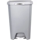 This Hefty Step On trash can in cement gray makes cleanup a breeze with its hands-free operation. Just step on the pedal to dispose and enjoy a silent, soft close. The brushed finish and stainless steel accents will elevate your space. Keep the trash bag secure by utilizing the notches at the top of the bin and change bags less thanks to the 12.1 gallon capacity. This stylish and functional waste solution is sure to take your space to the next level. On Feb 19, 2025 at 01:31:15 PST, seller added the following information: