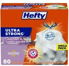 Ultra Strong Kitchen Trash Bags,13 Gallon with Lavender&Vanilla Scent,80 Count Description Trust Hefty Ultra Strong Tall Kitchen Trash Bags to keep your kitchen waste contained—all the way from can to curb. Thanks to Triple-Action Technology, these tough Hefty kitchen trash bags resist punctures, leaks, and tears, providing the highest protection available in flexible garbage bags. That stretchy strength means you don't have to worry about unexpected bag breakage and inconvenient messes. Don’t be afraid to use these kitchen trash bags for tougher jobs, such as garage, basement and construction cleanup. A break-resistant grip drawstring makes it easy to close the bag and cart it away without incident. As a bonus, these scented trash bags include a patented Arm & Hammer odor neutralizer and Lavender & Sweet Vanilla scent to keep unpleasant smells at bay. All Hefty trash bags are backed by a 100% satisfaction guarantee. Item Specification 13 GALLON GARBAGE BAGS—This package contains 80 Hefty Ultra Strong black, Lavender & Sweet Vanilla scented, 13 gallon kitchen trash bags TOUGHNESS YOU CAN TRUST—Hefty’s strongest tall kitchen trash bags deliver toughness you can trust with a secure, break-resistant drawstring & superior durability ARM & HAMMER ODOR NEUTRALIZER—Lavender & Sweet Vanilla scented patented odor neutralizer harnesses the power of Arm & Hammer to fight nasty odors to keep your kitchen smelling fresh TRIPLE-ACTION TECHNOLOGY—These kitchen garbage bags stretch & expand to accommodate oversized loads without punctures, leaks or tears 100% SATISFACTION GUARANTEE—We want you to be happy with your purchase! If you have any issues with
