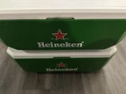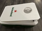 This Heineken Beer 2-In-1 Cornhole Sack Toss Party Game Cooler Ice Chest Set is the perfect addition to any breweriana collection. With its unique design, this cooler can be used for storing cold drinks or as a fun game accessory for a cornhole-style game. The set includes a cooler and two cornhole sacks, both adorned with the iconic Heineken logo. This set is sure to impress beer enthusiasts and collectors alike. Its country/region of manufacture is unknown, adding to its mystery and allure. Whether used for a casual game night or as a standout piece in a collection, this Heineken Beer 2-In-1 Cornhole Sack Toss Party Game Cooler Ice Chest Set is a must-have for any breweriana aficionado. 11-21-24