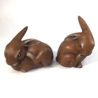 Heinz & Co Thuringer Handwerk Ceramic Brown Bunnies Rabbits Figurines Set of 2. One is 3.5" W x 3" H and second one is 4" H x 2" W. Very good condition, no chips , no cracks