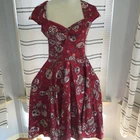 Hell Bunny Women Size SM Sasha Red Sugar Skull Dress 50s Style Pinup Gothic Sexy