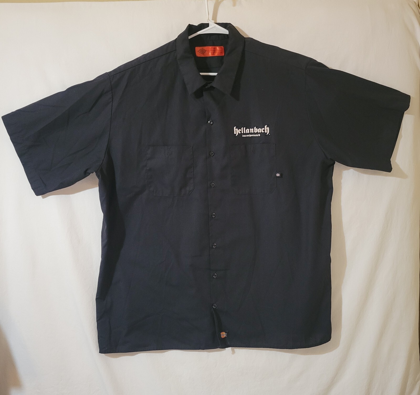 Hellanbach Incorporated Dickies Button Down Shirt Iron Skull Like new 65% polyester 35% cotton Size 4XL Chest: 30" Length: 33 1/4" Sleeve: 13" All measurements with shirt laid out flat. Refer to chart and measurements for accurate fit.