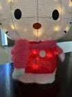 Add a touch of holiday cheer to your home with this rare and jumbo Hello Kitty Christmas 28" 3D lighted electrical figure. The beloved character, brought to you by Kurt Adler in collaboration with Sanrio, is dressed in festive attire and ready to spread some Christmas joy. The figure is made of high-quality materials such as fabric, wire, electrical wire, and plastic, ensuring durability and longevity. This collectible piece is perfect for fans of the Hello Kitty franchise and animation merchandise alike. Despite the box being damaged, the figure is in excellent shape and will make a great addition to any collection. Don't miss your chance to own this special 2012 edition of the Hello Kitty Christmas 28" 3D lighted holiday decor. Has never been used except to put together to take pictures. Included is the original zip ties, instructions, and ground stakes if needed. The clear plastic is still on the tin bow (see closeup picture) It was stored in the original box (box has lots of storage damage). Extremely hard to find!!