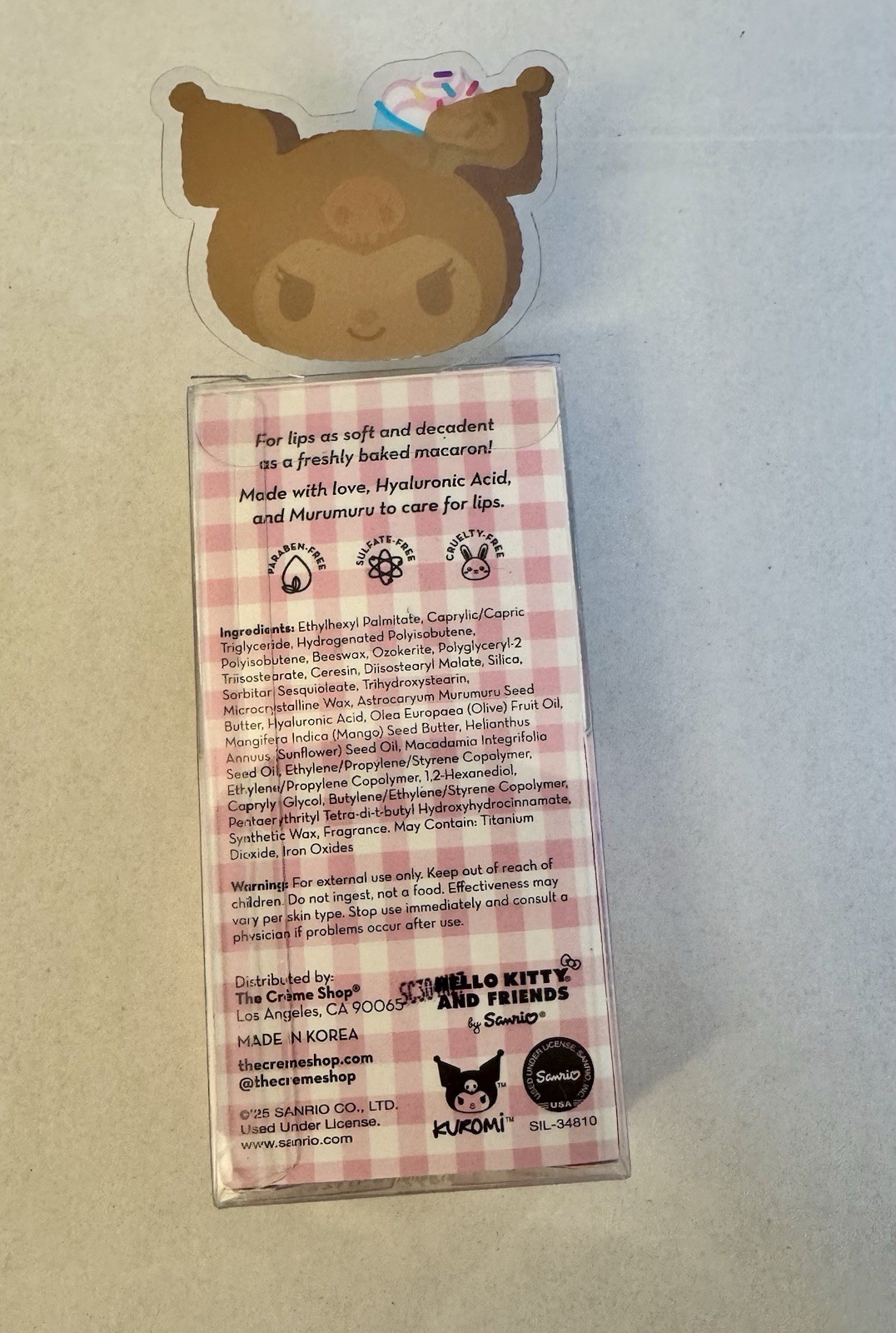 The Creme Hello Kitty & Friends Macaron Lip Balm KUROMI is a delightful lip balm with a charming Hello Kitty brand. Infused with strawberry active ingredient, this lip balm is perfect for soothing dry, chapped, and cracked lips. With a delightful chocolate strawberries scent, this lip balm comes in a 0.3 fl oz size, making it convenient for regular use. Made with beeswax and part of the Vaseline Lip Therapy product line, this lip balm is a sweet and effective treat for your lips.