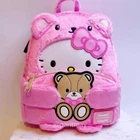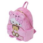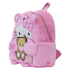 Hello Kitty Teddy Bear Cosplay Pink Plush Mini Backpack Loungefly & Sanrio *Brand New, in Sealed Package With Tags, Gifts & Storage Bag* Say hello in beary sweet style. Take along our exclusive Loungefly Hello Kitty Plush Bear Mini Backpack. This adorable accessory features soft pink plush on the front and side pockets. It appears that Hello Kitty has donned her pink bear hoodie outfit, and she looks comfy and cozy. Her applique plush arms, on the front zipped pocket, wrap around an applique teddy bear, and her signature pink bow frames her face. Pink plush bear ears poke up over the top, and embroidery brings the face of the pink bear on the hoodie to life. On the back, Hello Kitty’s teddy bear makes an encore appearance with a heart. Share smiles wherever you go with this heartwarming accessory. Item ships brand new in sealed package with tags. Includes a Loungefly storage bag. Backpack features include gold-colored metal hardware, vegan leather (polyurethane), plush, adjustable straps, side pockets, and applique, debossed, embroidered, and printed details. Note the coordinating lining. This backpack is an officially licensed Hello Kitty product. Backpack dimensions: 9” W x 10.5” H x 4.5” D (Width is measured across the bottom of the backpack.)