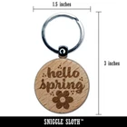 Hello Spring Engraved Wood Round Keychain Tag Charm