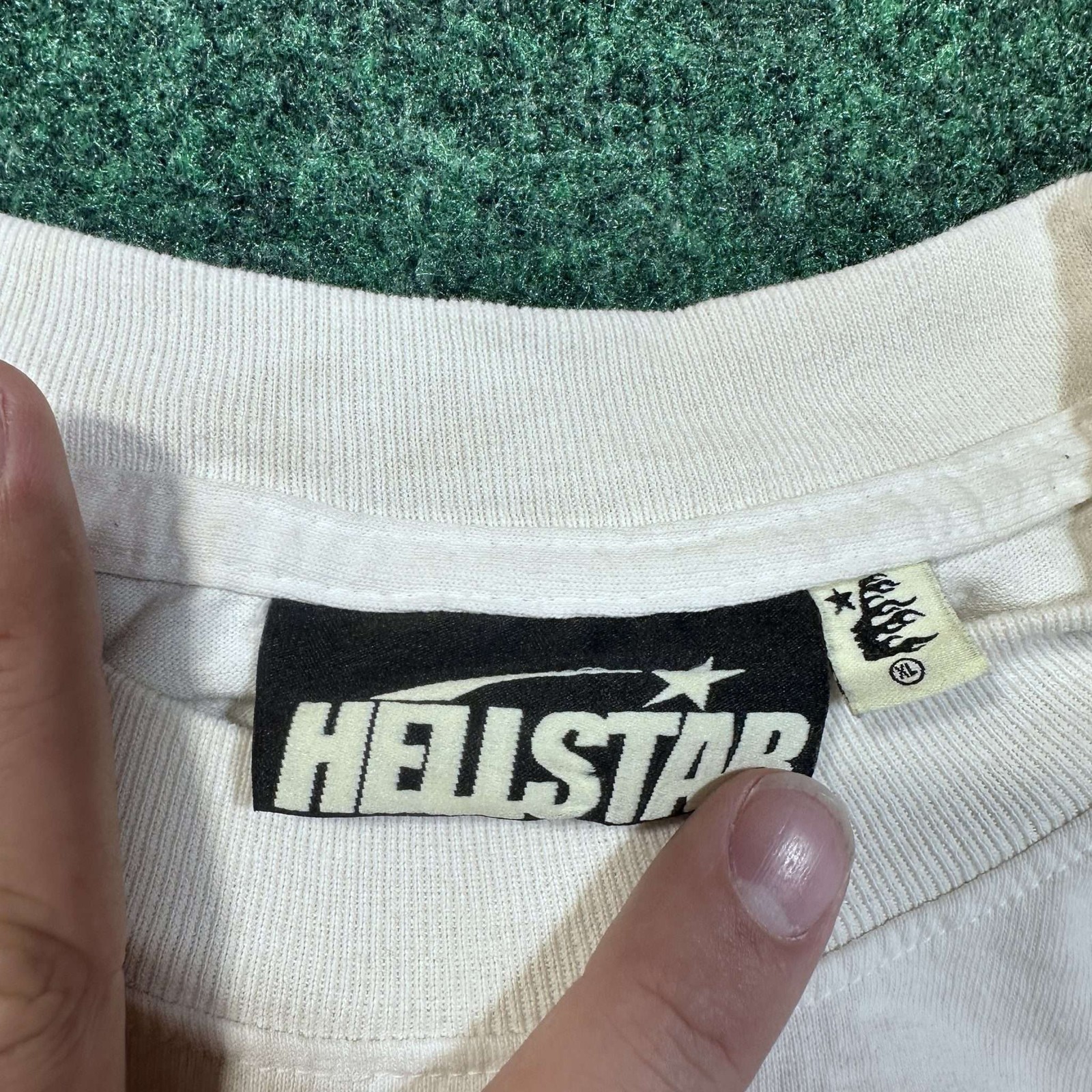 ALWAYS AUTHENTIC, SHIPS 1 BUSINESS DAY, VERIFIED SELLER Hellstar Beat Us! Tee White/Blue XL Used This Hellstar Beat Us! Tee features a bold design with ‘IF YOU DONT LIKE US BEAT US!’ printed on the front in blue. The back showcases a unique graphic with a star and flame motif. Made from quality materials, this white and blue tee is perfect for making a statement. Size XL, used condition, offering a comfortable fit for casual wear.
